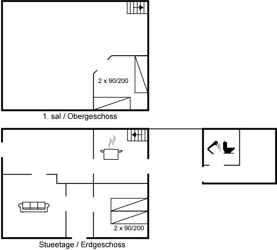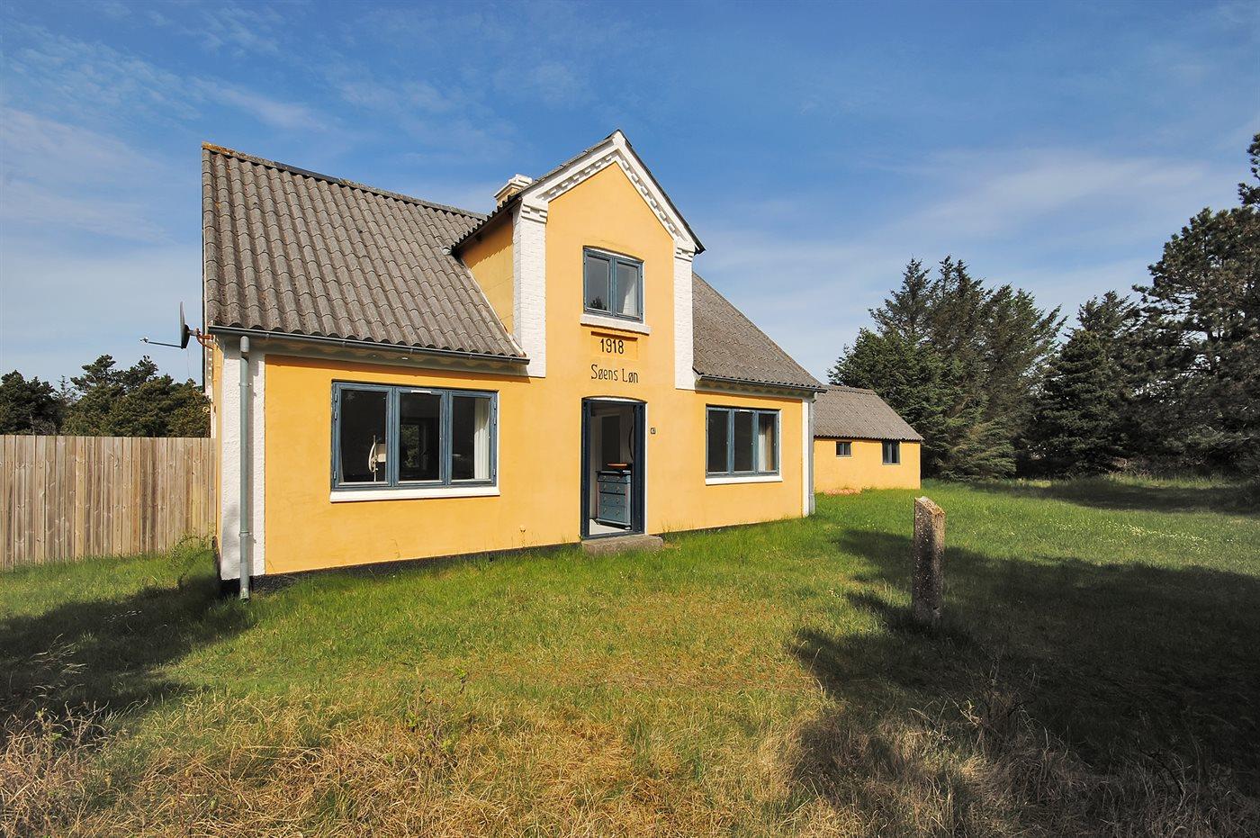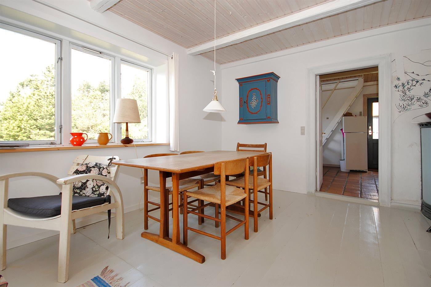 Dette charmerende gamle fiskerhus er beliggende i Lyngby Thy, den mest uspolerede del af Nationalpark Thy. Huset er perfekt for de gæster, der ønsker en ferie i et hyggeligt hus, som er simpelt og spartansk indrettet og som ligger i skøn natur og rolige omgivelser. BEMÆRK: Bad og toilet er placeret i en lille bygning ved siden af hovedhuset. En stejl trappe fører op til 1. sal, som er indrettet med soveværelse med 2 enkeltsenge og 2 sovepladser på madrasser i stuen (se grundplan).