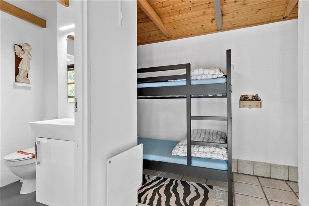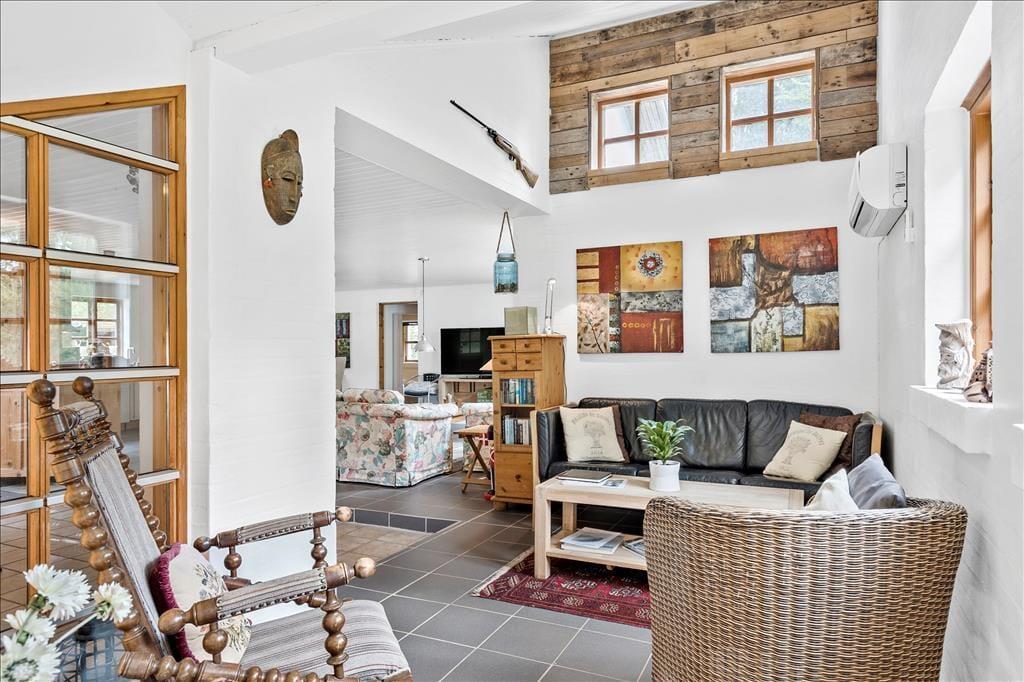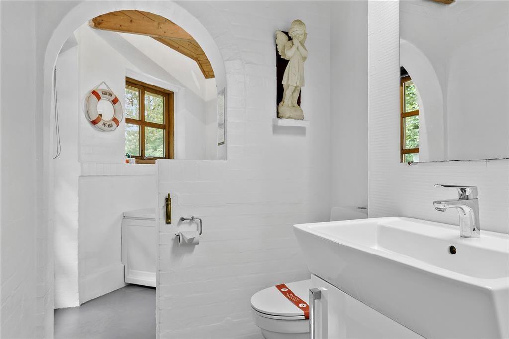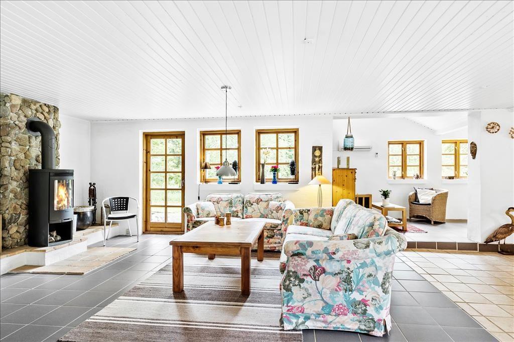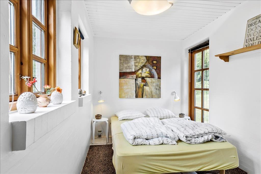 Dette sommerhus er oprindelig opført i 1965 og har fået en flot renovering ved årtusindeskiftet samt et ekstra badeværelse med spabad og bruseniche i 2021. Huset fremstår i dag i traditionel middelhavsstil med hvide mure, trævinduer, flotte klinker, skæve vinkler og behagelige kurvemøbler; kort sagt en lille hyggelig oase, hvor I rigtig kan slappe af og komme ned i gear. Sommerhuset består af et stort og åbent køkken med god plads, en stue med flere hjørner og små kroge, stor brændeovn, 2 varmepumper og tv, 2 soveværelser med dobbeltseng samt et køjerum, endnu et badeværelse med bruser og vaskemaskine. Der er gulvvarme i opholdsområdet samt begge badeværelser.