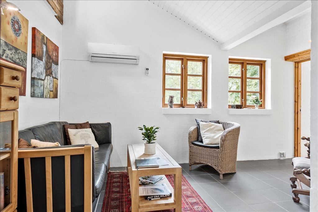 Sommerhuset er i 2020/2021 blevet udstyret med en ekstra stor varmepumpe, supplerende solenergi og lader til elbil.