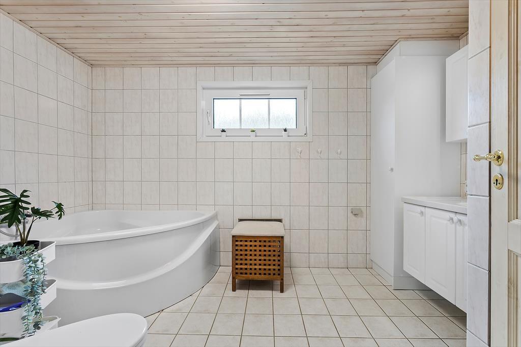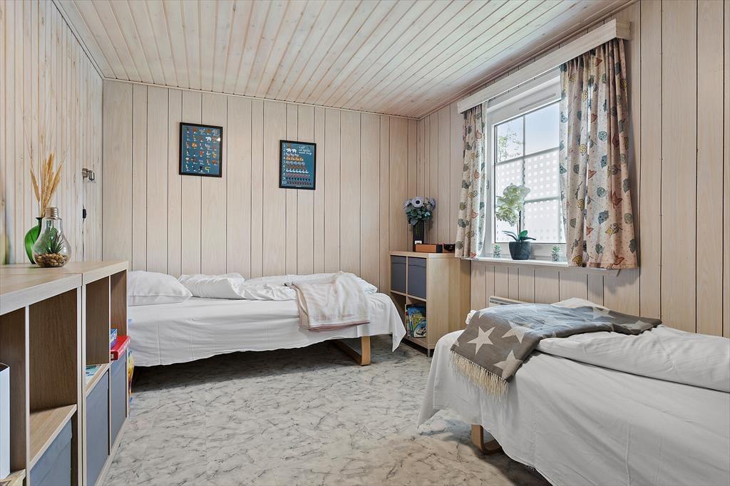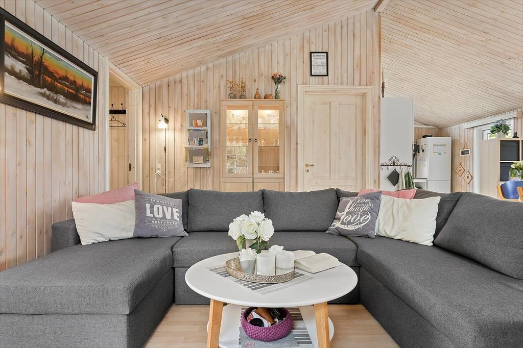Inden døre i sommerhuset har I 106 veldisponerede kvadratmeter at brede jer på. Den lyse træbeklædning på vægge og lofter er noget af det, der bidrager til husets charmerende atmosfære, og stuens brændeovn er med til at give rummet den helt rette feriefornemmelse. Skal der virkelig hygges igennem med brætspil, snacks og filmaftener, er stuen et skønt opholdssted – og det er også her, I kan kokkerere i det åbne og velindrettede køkkenafdeling. På badeværelse er der badekar, hvis I trænger til et varmt og afslappende bad, mens gæstetoilettet er udstyret med vaskemaskine og tørretumbler, der gør det nemt at vaske tøj undervejs på ferien. Endelig byder planløsningen på tre rummelige værelser, der i alt kan rumme syv personer.