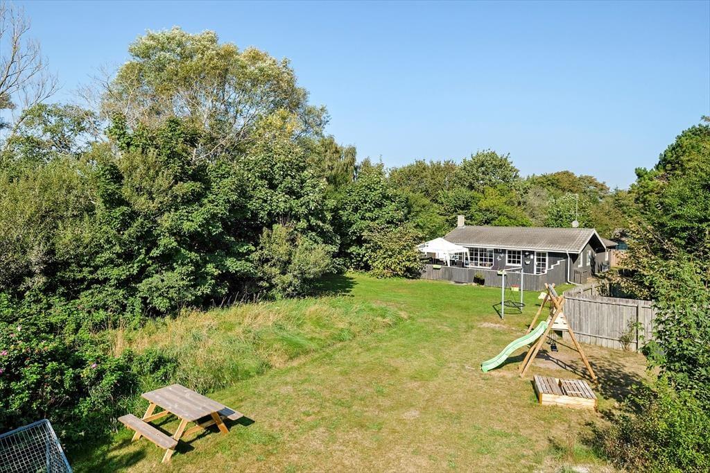 God plads er der også ude på den sydvendte træterrasse og i haven i det hele taget. Grunden måler 1.421 m2 og er enkelt anlagt med skærmende randbeplantning og en stor græsplæne, som indbyder til boldspil, kolbøtter og solbadning. Til børnene er der sandkasse og gynger, mens hele familien kan få glæde af havemøblerne, liggestolene og grillen.