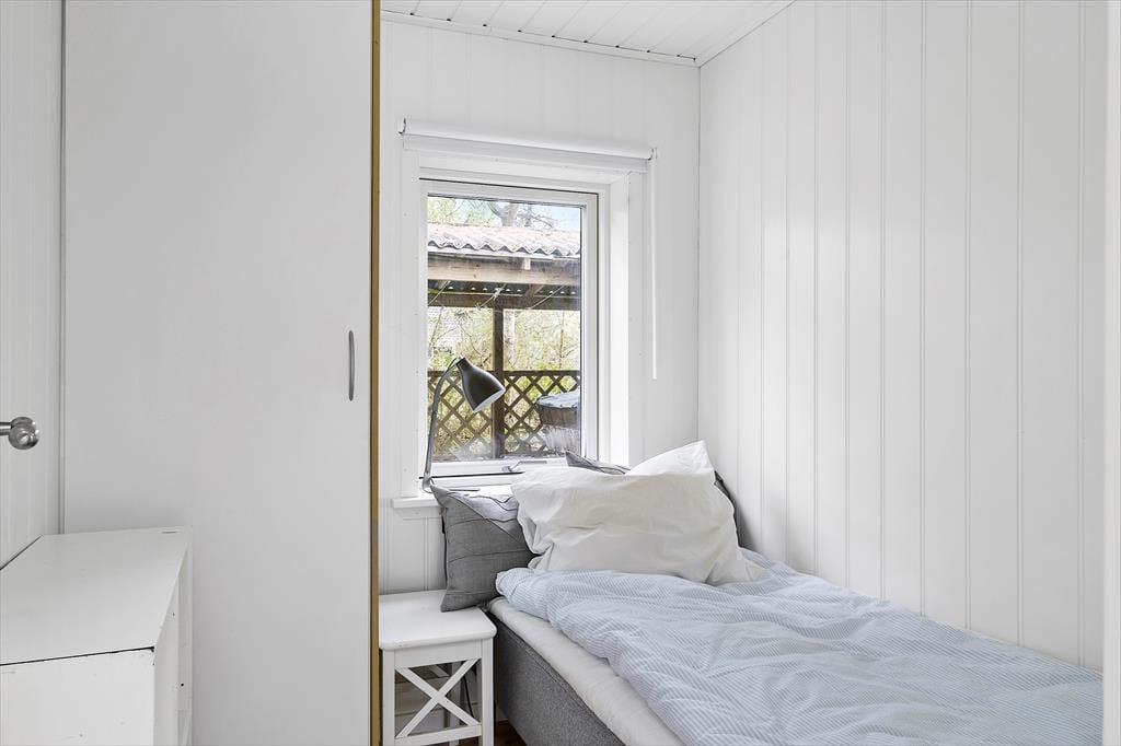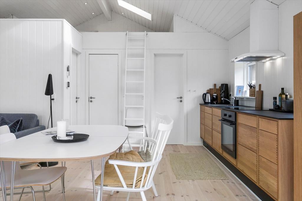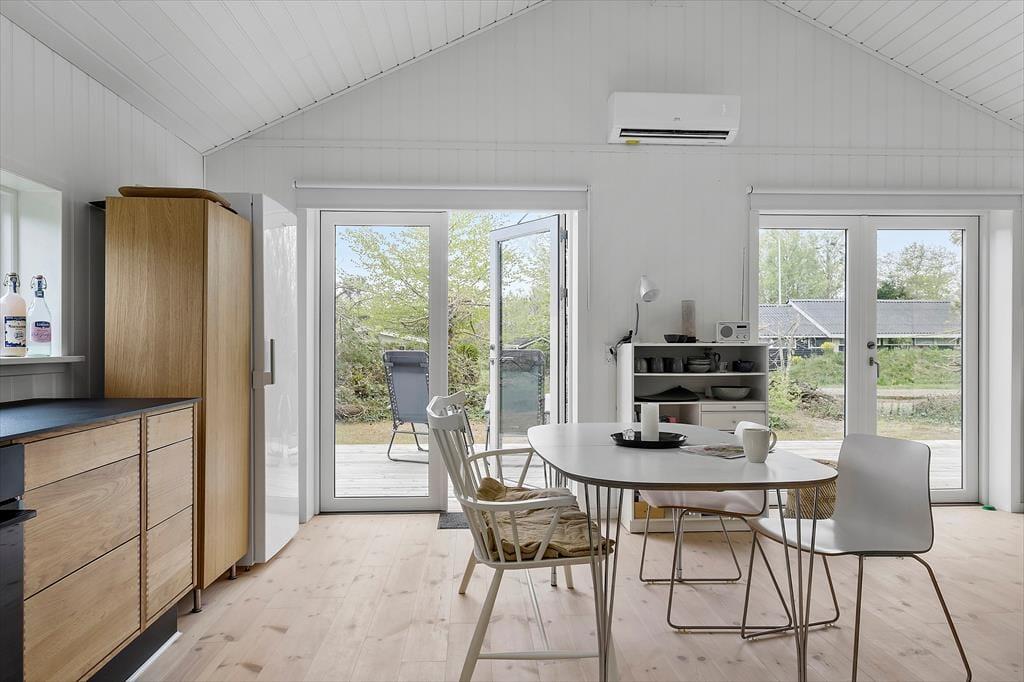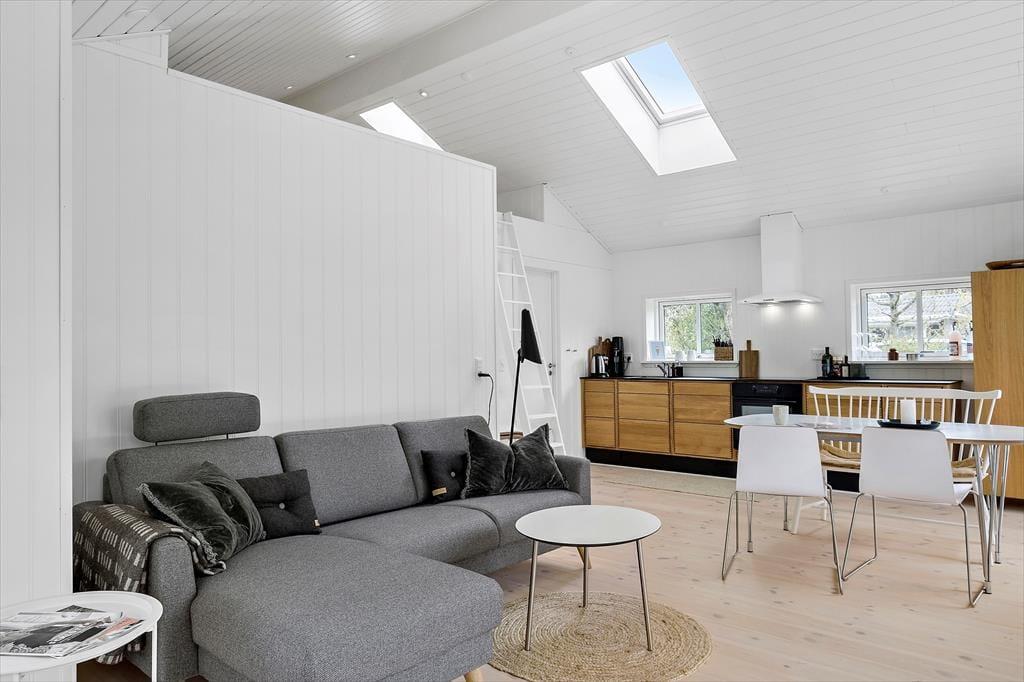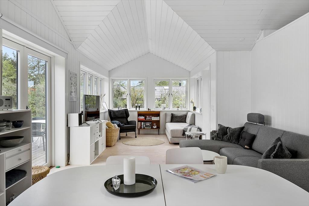 Her på adressen finder I et velbygget sommerhus fra 2021, der præsenterer sig på flotteste vis med sort træfacade og et lyst og skønt indre. De store vinduer inviterer sollyset indenfor fra flere verdenshjørner, og med loft til kip og hvid maling på væggene har stuen et let og luftigt udtryk. Et lækkert køkken er integreret med rummet, så madlavningen bliver en naturlig del af de fælles hyggestunder. Vil I se film, kan I sætte jer godt til rette i sofaen og tænde for fladskærms-tv’et, der har Chromecast tilsluttet. Badeværelset er enkelt, pænt og derudover med bruseniche, og de to soveværelser har i alt tre sengepladser. Hvis I har brug for en ekstra, er der mulighed for at rede op i stuen.