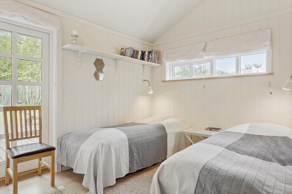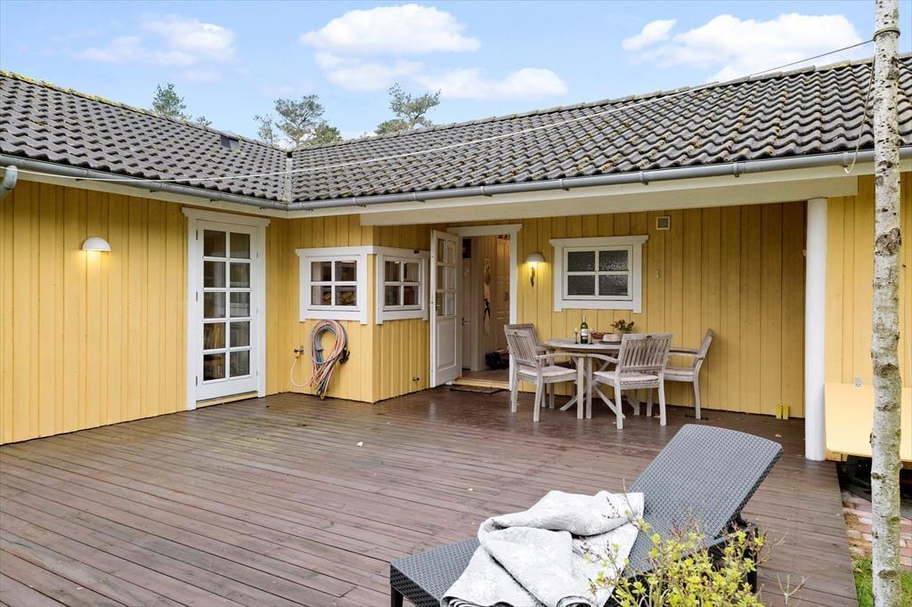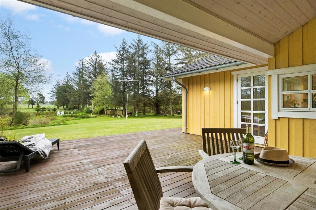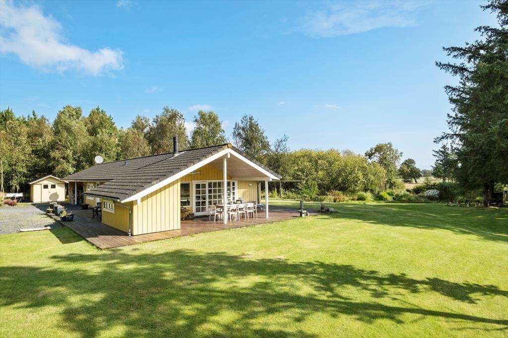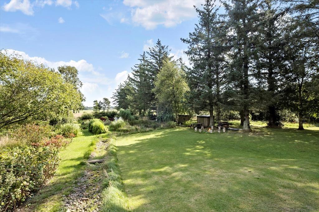 Den store naturgrund omkring sommerhuset er et paradis for naturelskere. Her kan du nyde det rige fugleliv og måske få øje på en hare, der hopper forbi. Den ugenerede beliggenhed sikrer, at du kan slappe af i fred og ro, uden at blive forstyrret af naboer. På den rummelige terrasse kan du nyde solens stråler hele dagen eller finde skygge under de høje træer. Der er masser af plads til både leg og afslapning, og børnene kan løbe rundt og lege på græsplænen, mens du slapper af med en god bog i en af de komfortable havemøbler. Når aftenen falder på, kan I samle familien til en hyggelig grillmiddag på terrassen og nyde den fredfyldte stemning.
