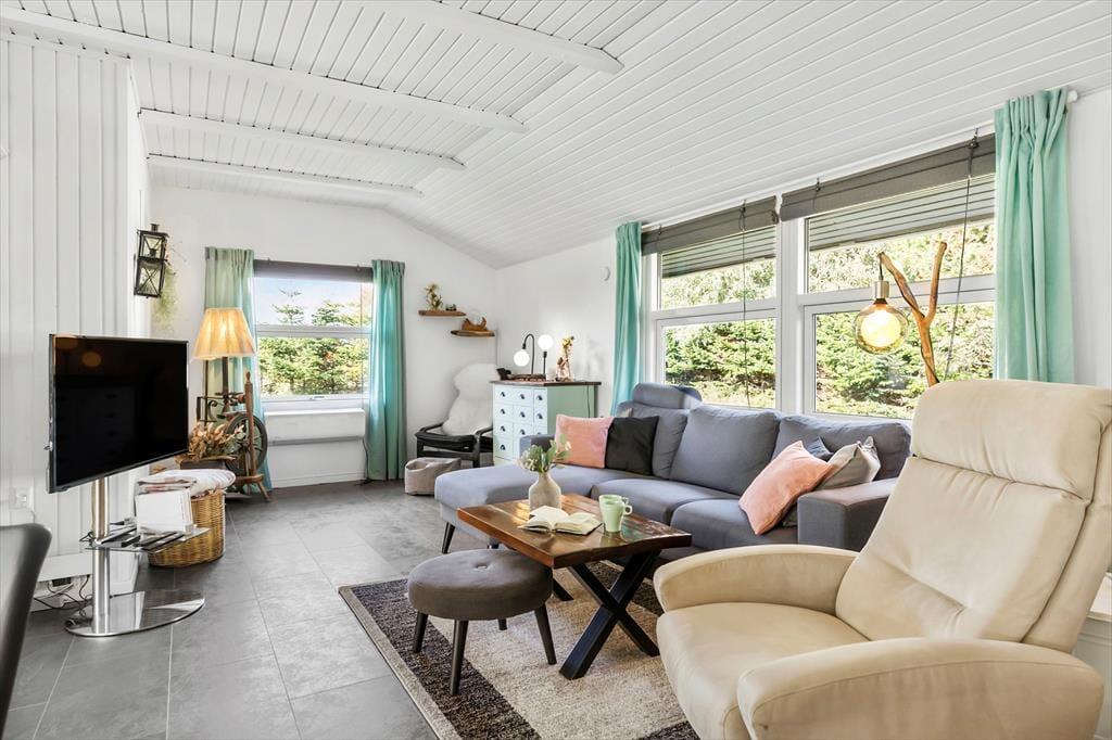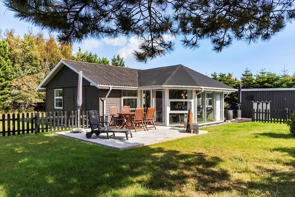 Kom og oplev et hyggeligt feriehus tæt på stranden i Lyngså med moderne faciliteter og skøn have.