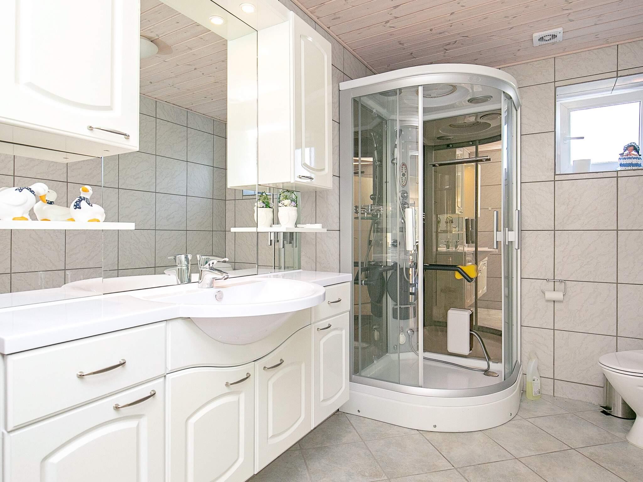 Der er stort badeværelse med dampbruser. Køkkenet er stort og der er god plads. Fra køkkenet er der adgang til et stort værelse, som er indrettet med seng og en sovebriks, hvor der også er et tv. Fra værelset er der adgang til endnu et stort badeværelse med spabad og dampbad i samme brusekabine.