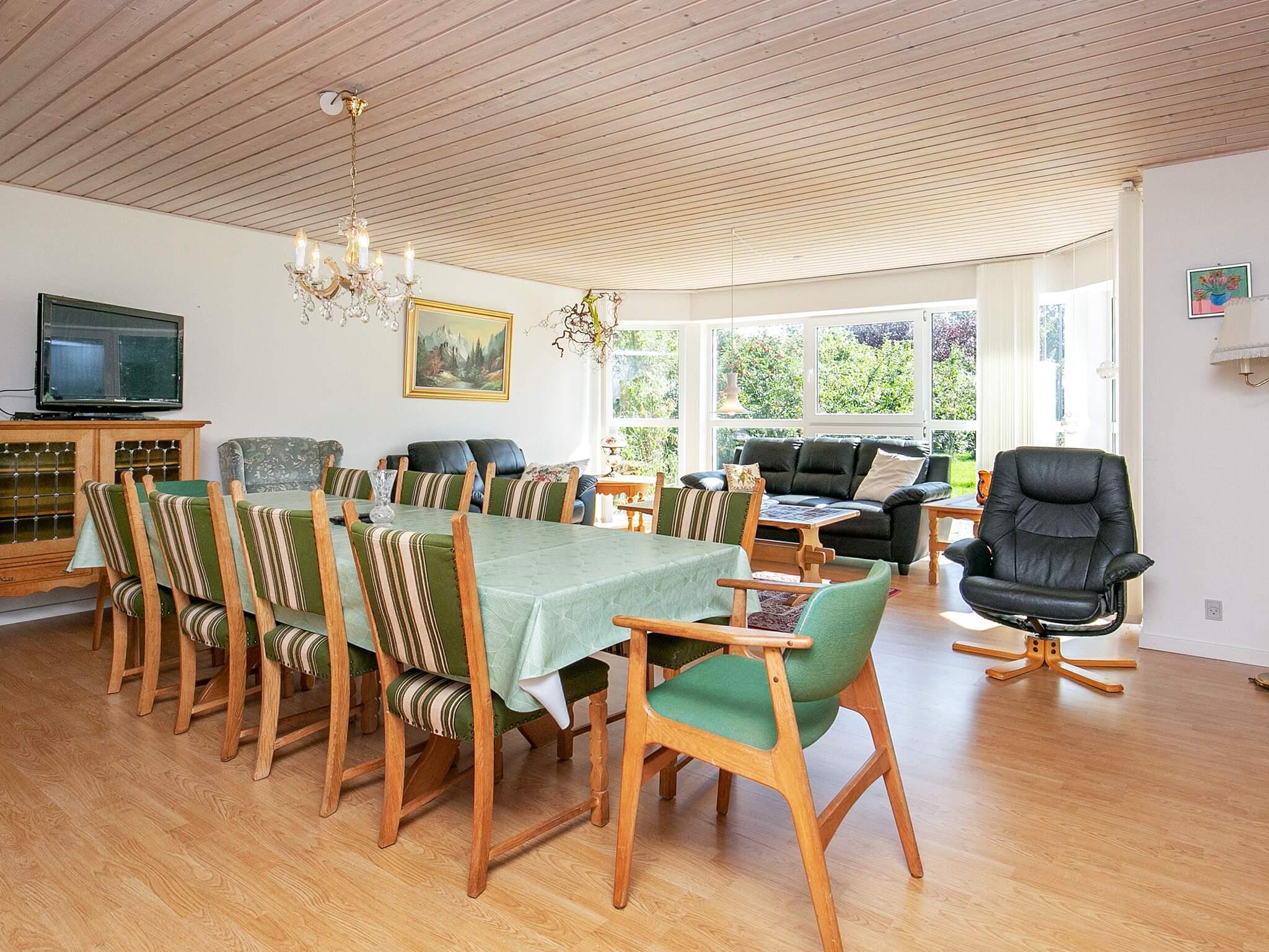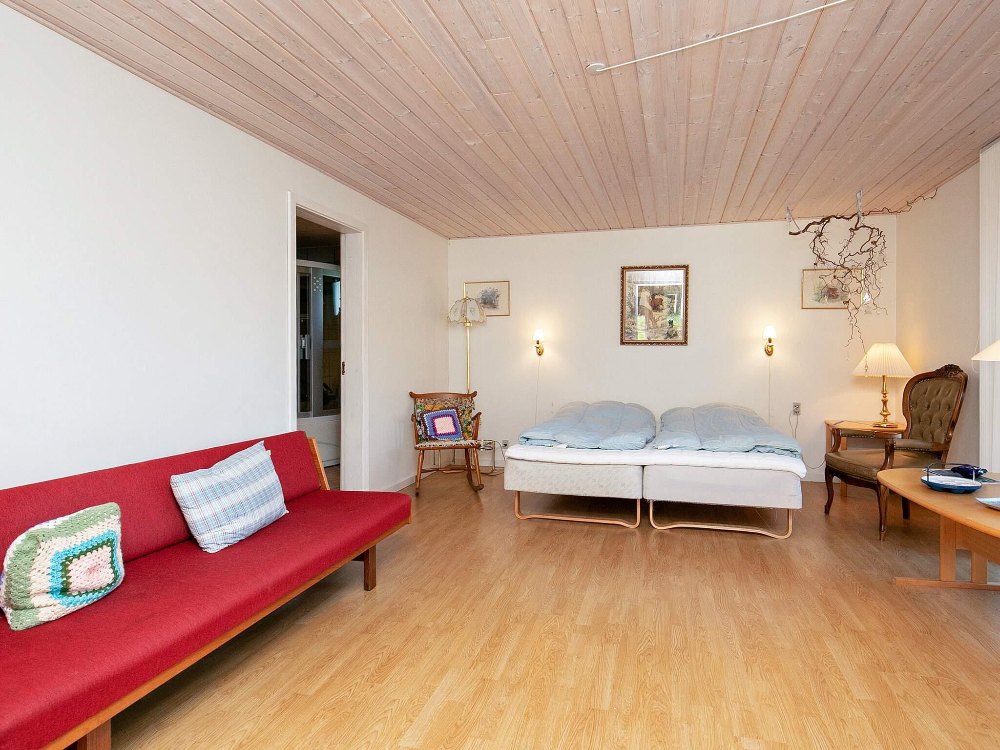 Stuen er indrettet med flere sofagrupper i ældre stil. Her er også et stort spisebord med plads til alle. Fra stuen er der adgang til to soverum. I soveværelset med dobbeltsengen er der god plads til at stille en ekstra barneseng. I det andet soveværelse er der en køjeseng og 2 enkeltsenge.
