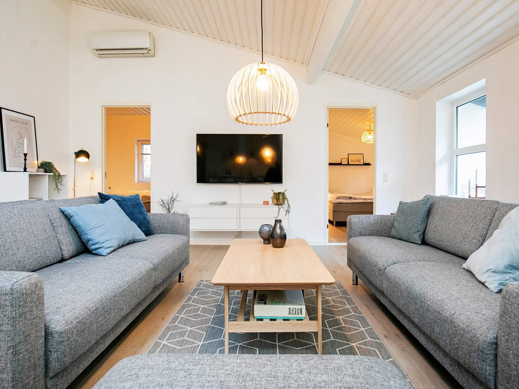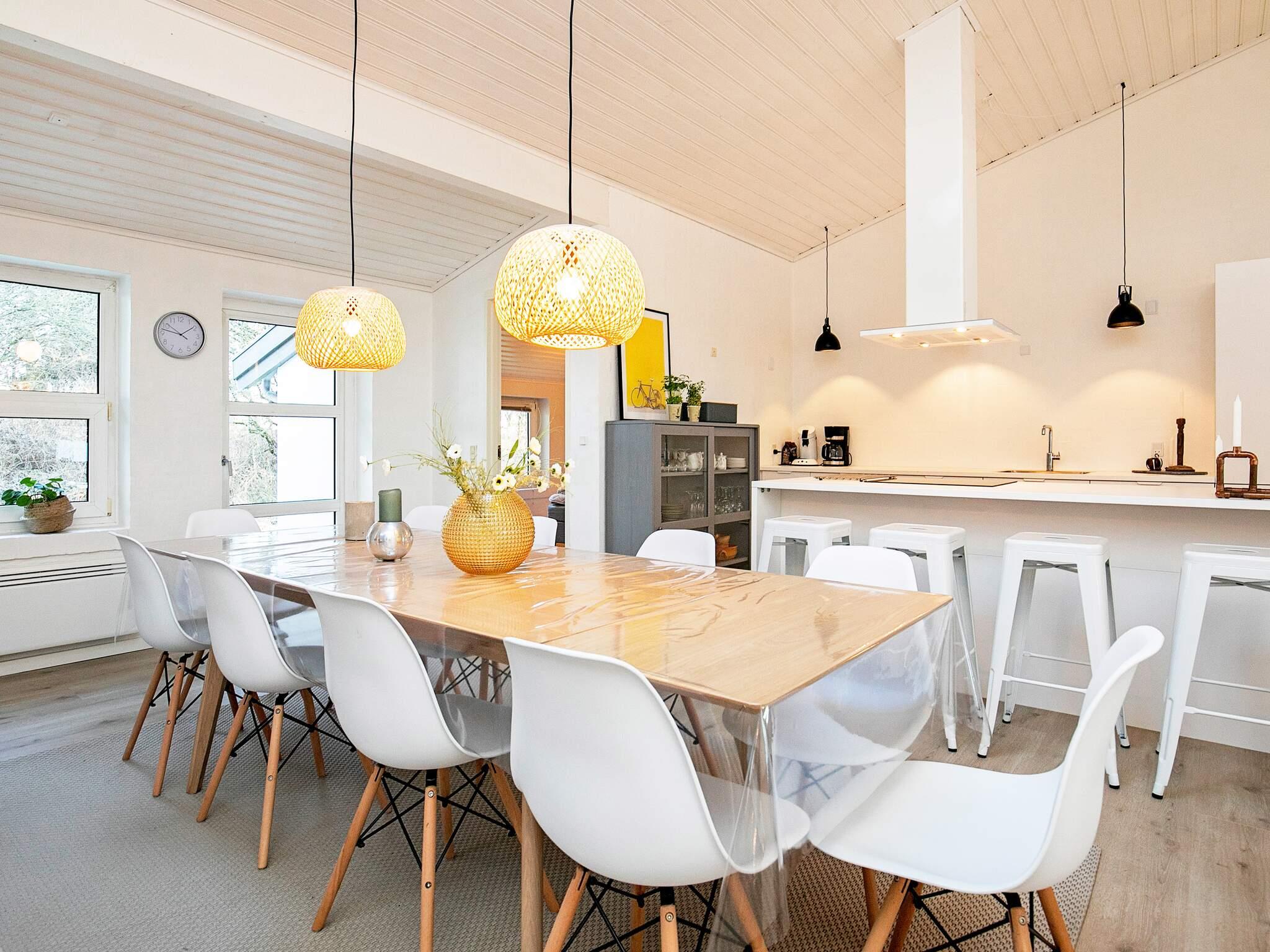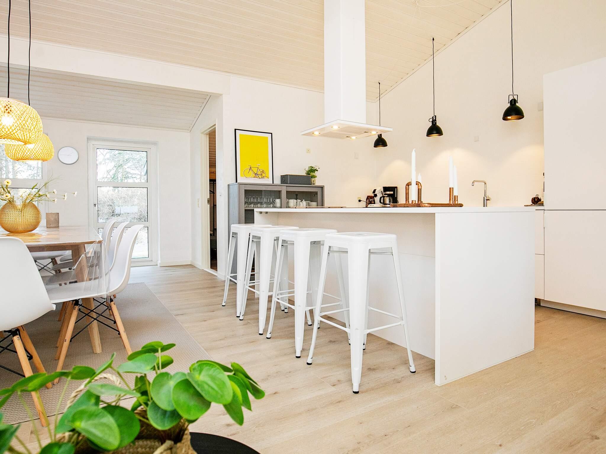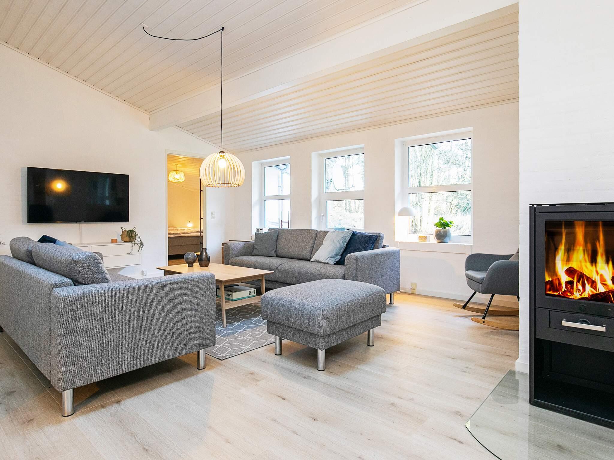 Det velindrettede sommerhus har et dejligt stort kombineret køkken-/stueområde med brændeovn, hvor fællesskabet rigtig kan nydes.