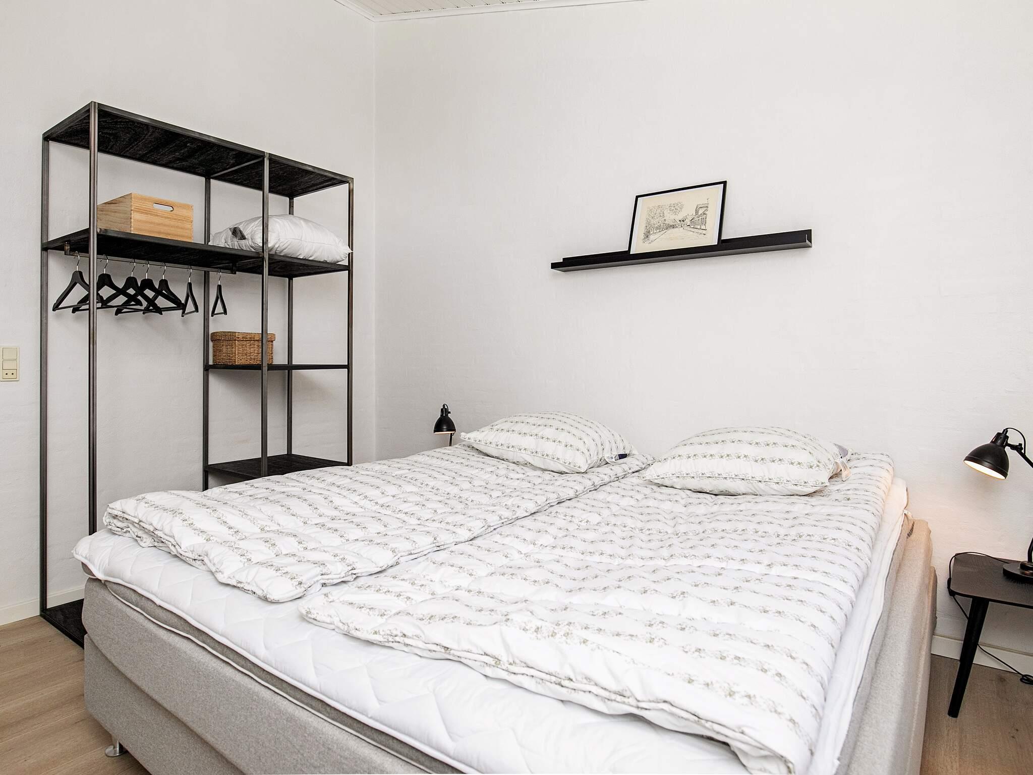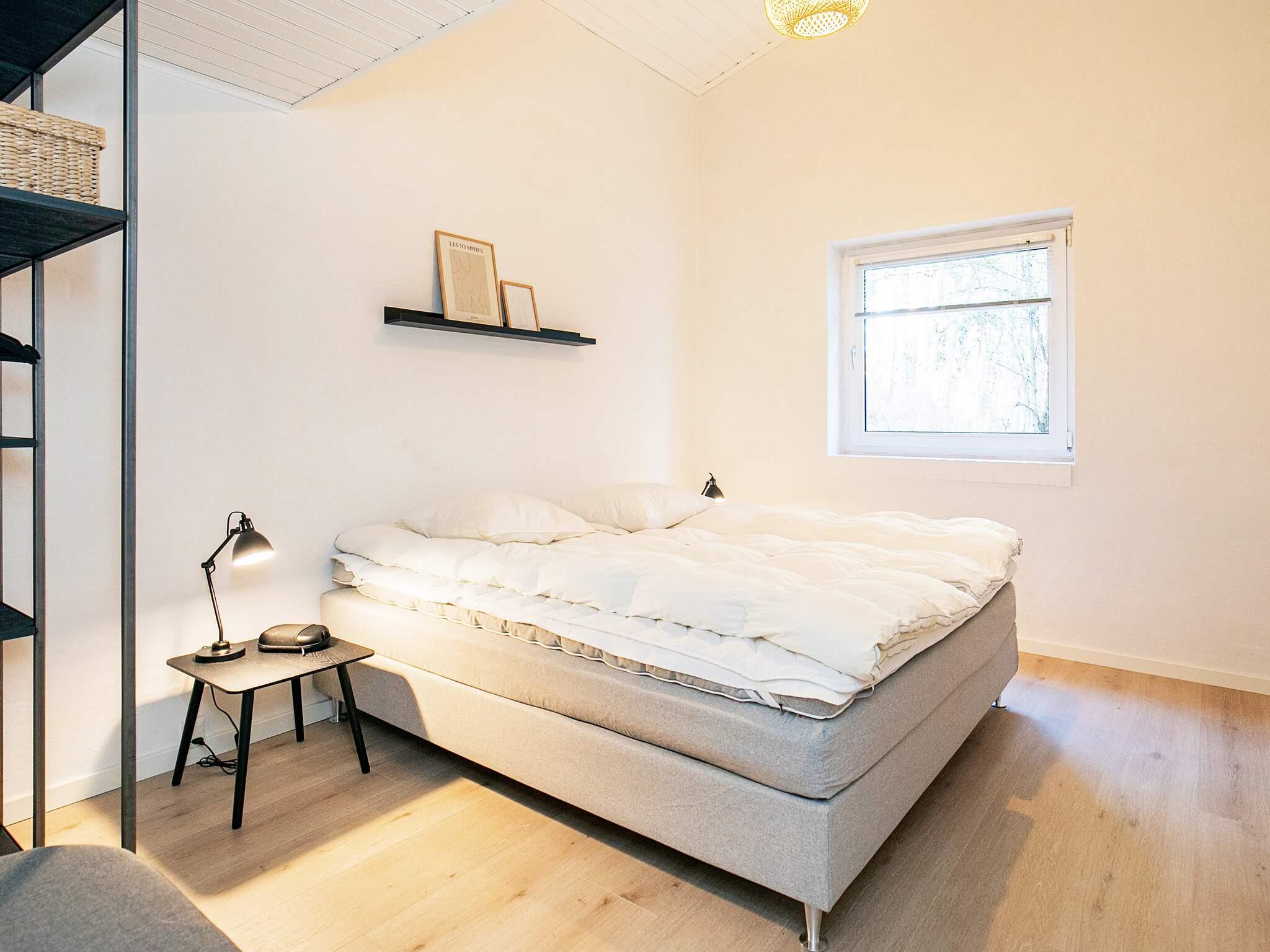 De fire soveværelser har dobbeltsenge og derudover har et af værelserne en hems med to opredninger. Det femte soveværelse er med to køjesenge med fire pladser i alt. Køjesengene måler 90x200.