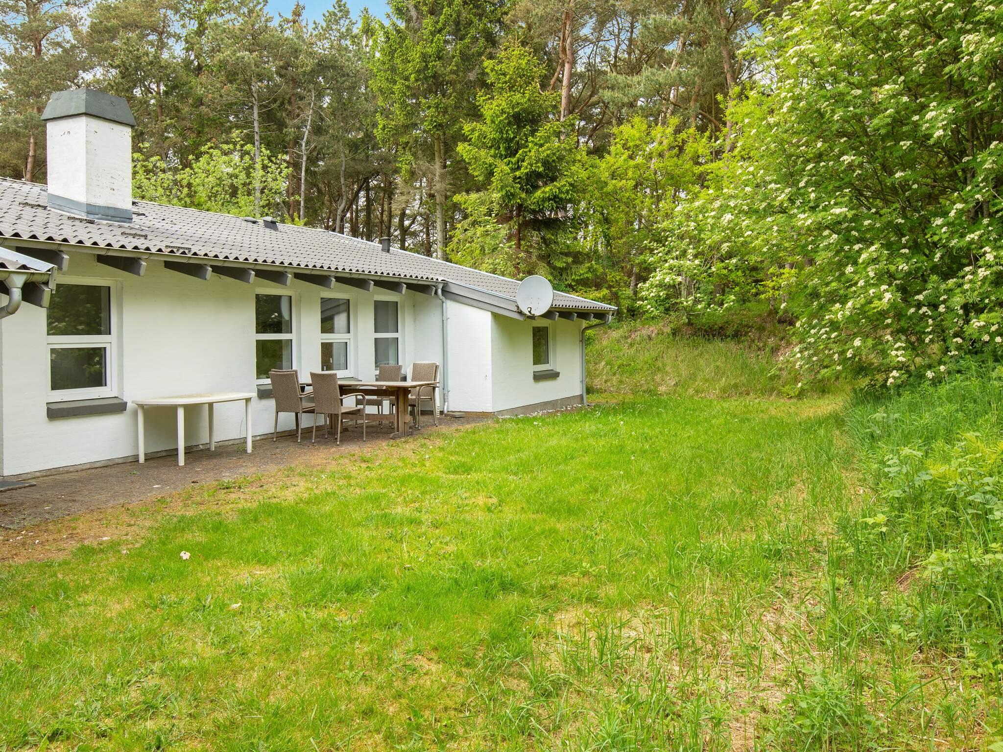 Grunden er 5000 m2 naturgrund med træer, der giver læ og afskærmning. Huset ligger derved ugenet. Foran huset er der en stor terrasse, som er delvist overdækket.