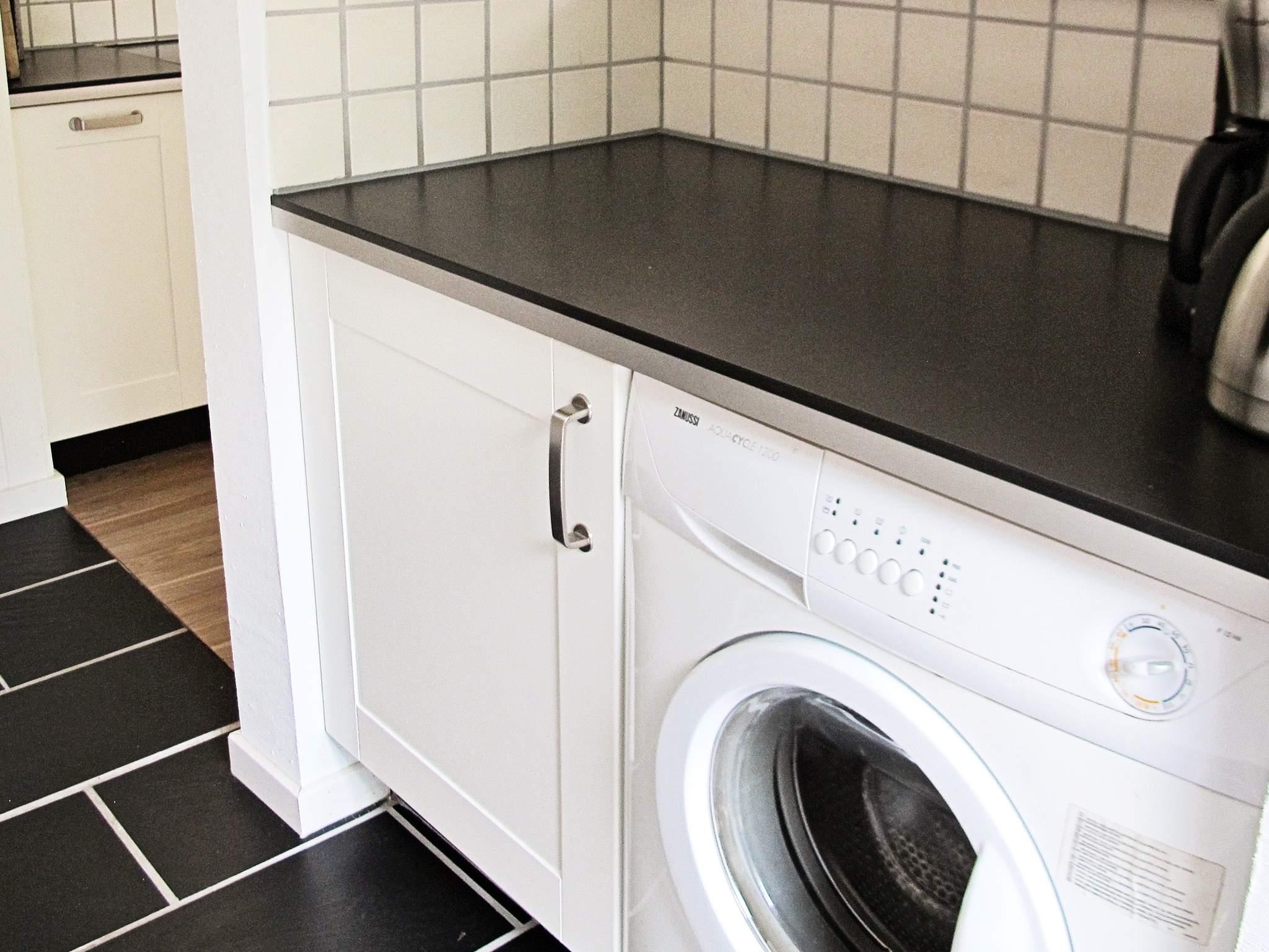 Køkken: El-komfur, køle-frys, mikroovn, kaffemaskine, opvaskemask., vaskemaskine