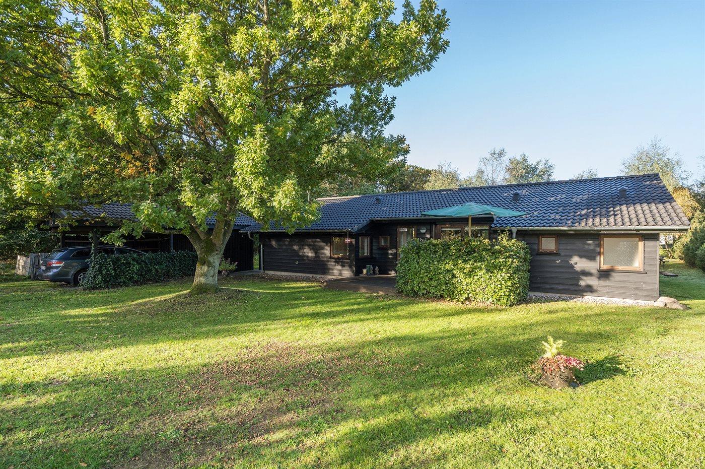 Velholdt sommerhus i Lyngså med spa, sauna, bålsted og stor naturgrund nær strand.