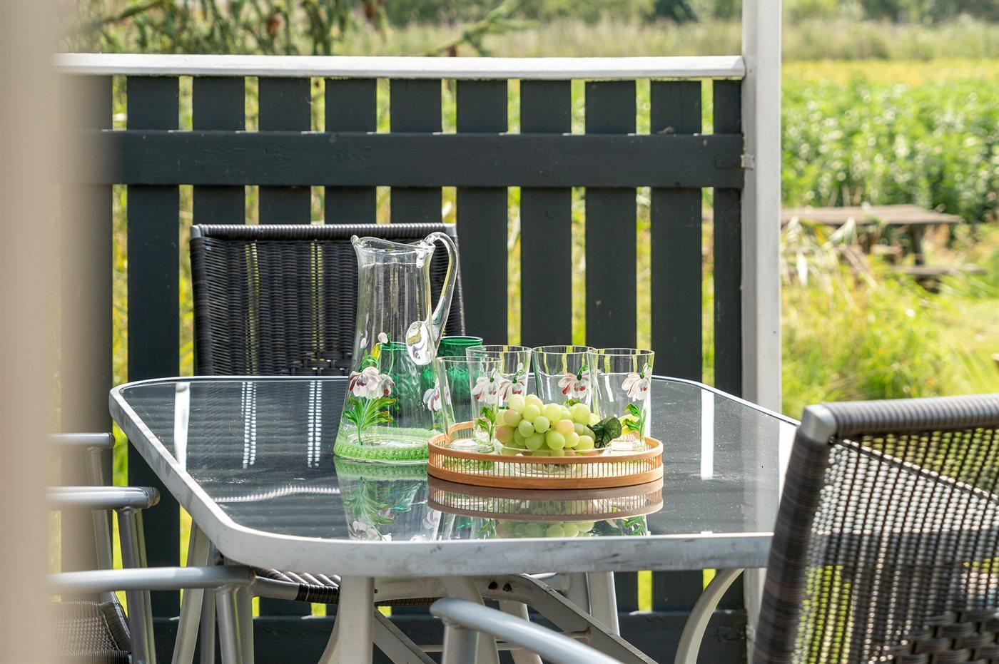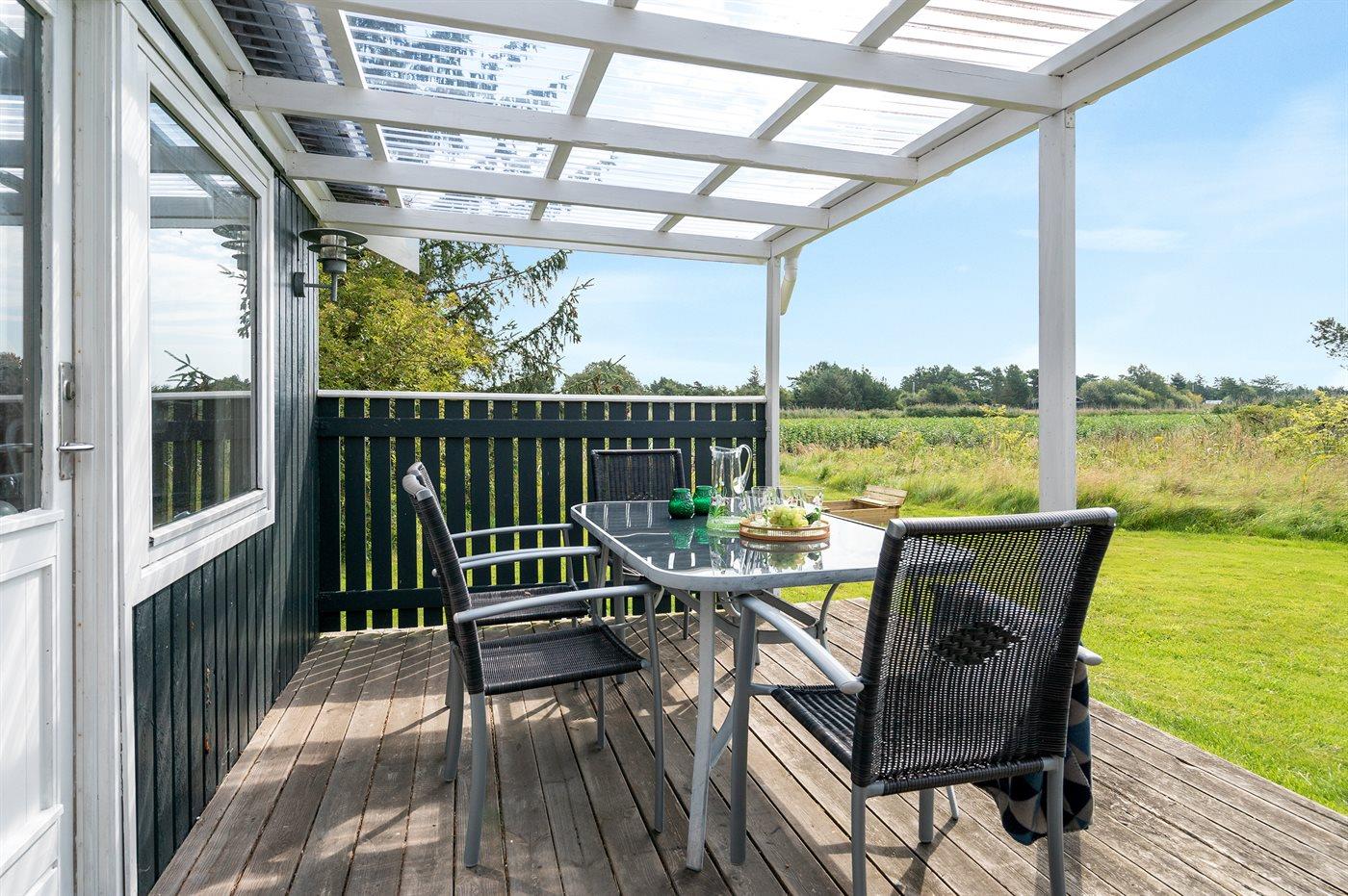 Ferieboligen er beliggende på en 1200 m² stor naturgrund. Der er 300 m til havet. Nærmeste forretning er beliggende i en afstand af 8000 m. Til ferieboligen hører 12 m² terrasseareal. Desuden er der 12 m² overdækket terrasse. Parkering ved ferieboligen.