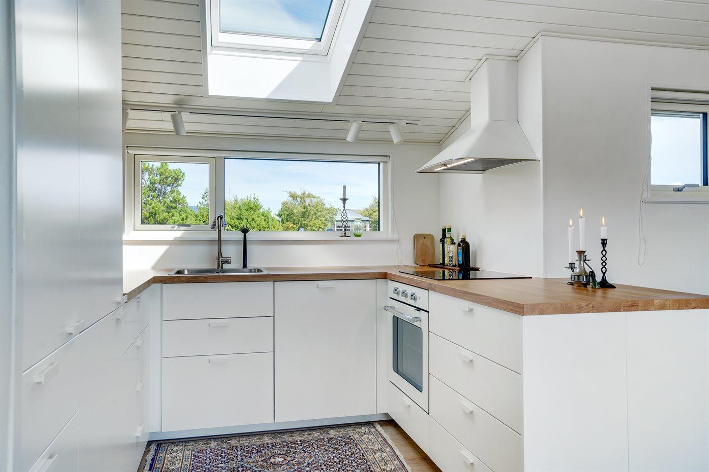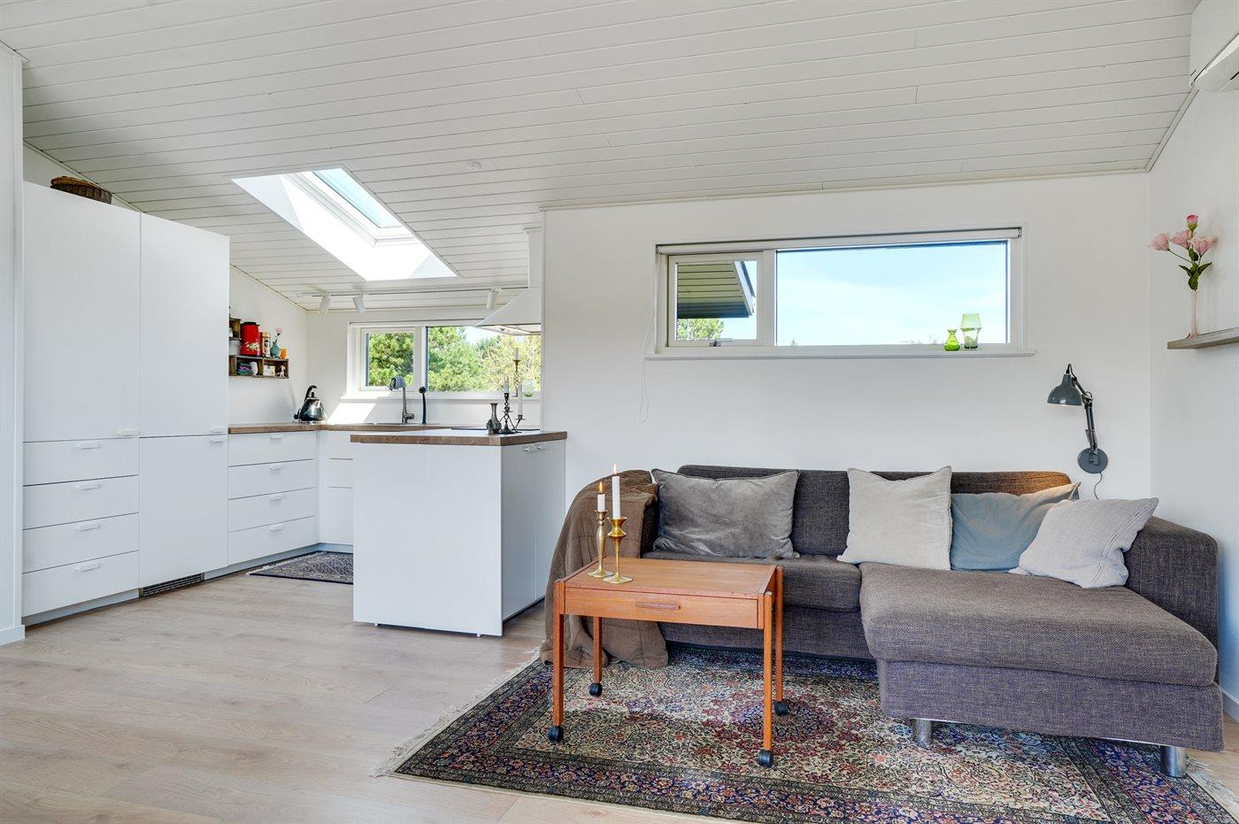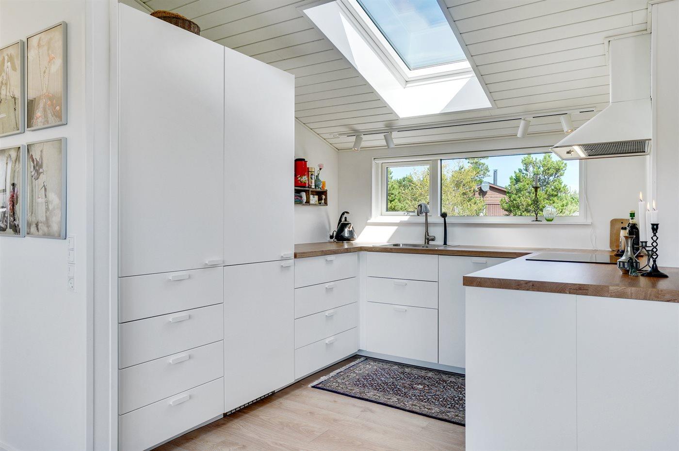 Køkkenet er udstyret med 1 køleskab. Der er 4 induktionskogeplader, varmluftovn, mikrobølgeovn samt opvaskemaskine.