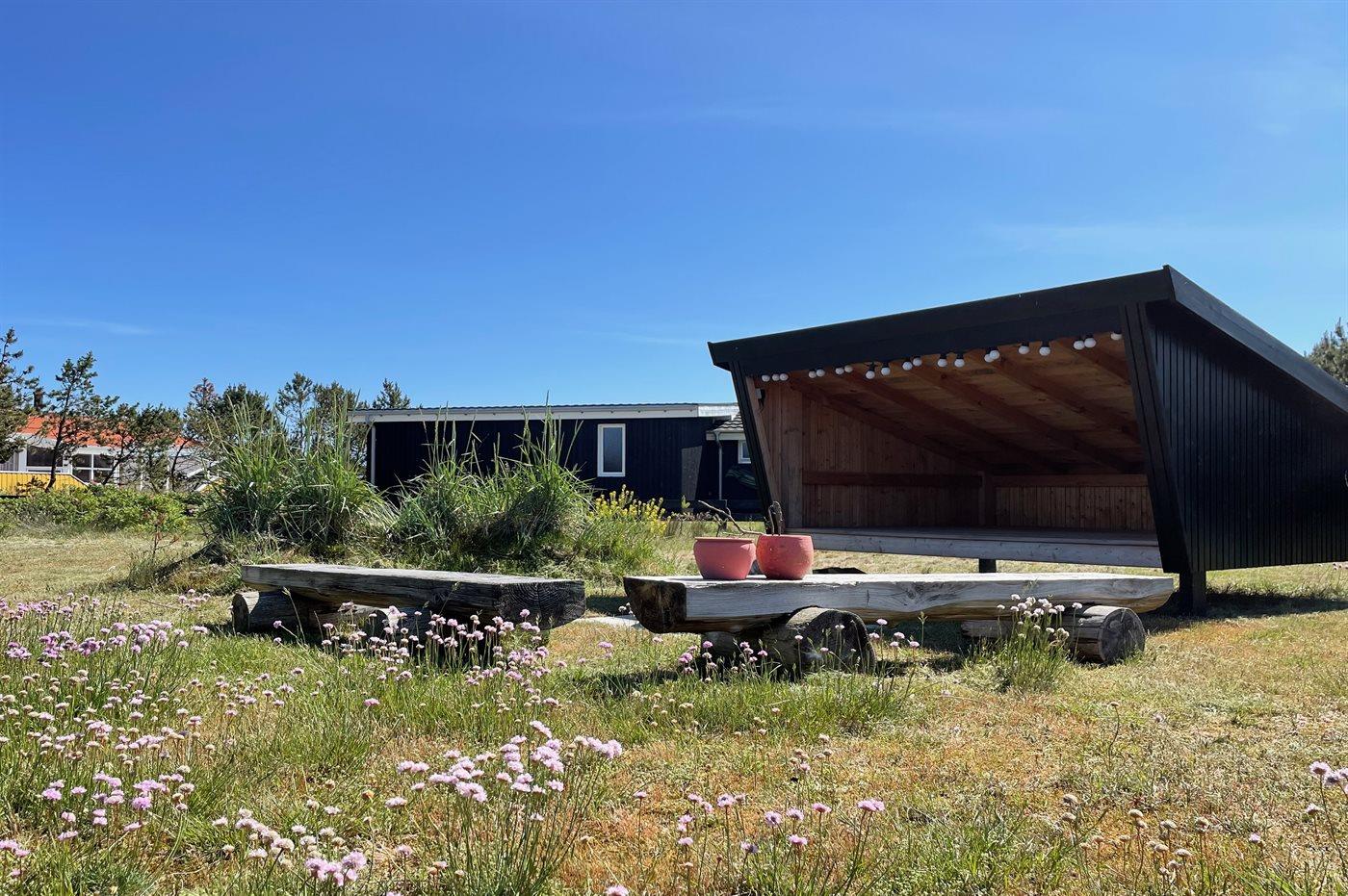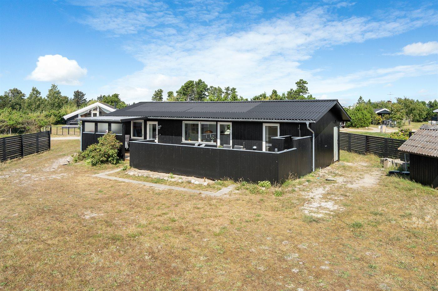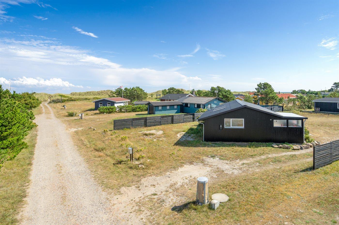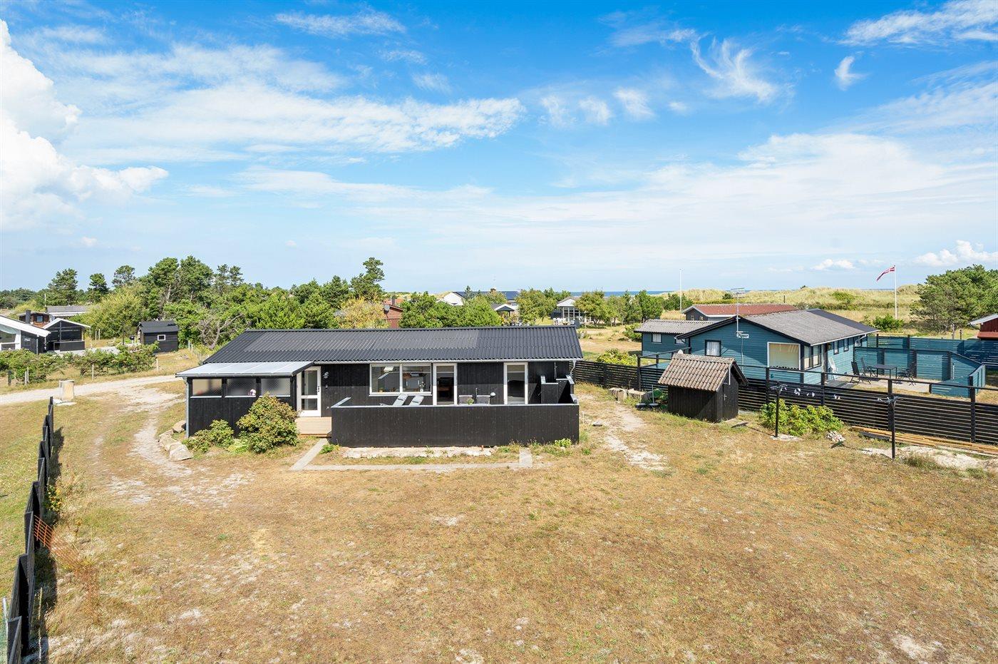 Ferieboligen er beliggende på en 1100 m² stor naturgrund. Der er 100 m til havet. Nærmeste forretning er beliggende i en afstand af 10000 m. Der er en golfbane i en afstand af 12000 m. Til ferieboligen hører 40 m² terrasseareal. Desuden er der 8 m² overdækket terrasse. Udendørs bruser. Grill til rådighed. Parkering ved ferieboligen.
