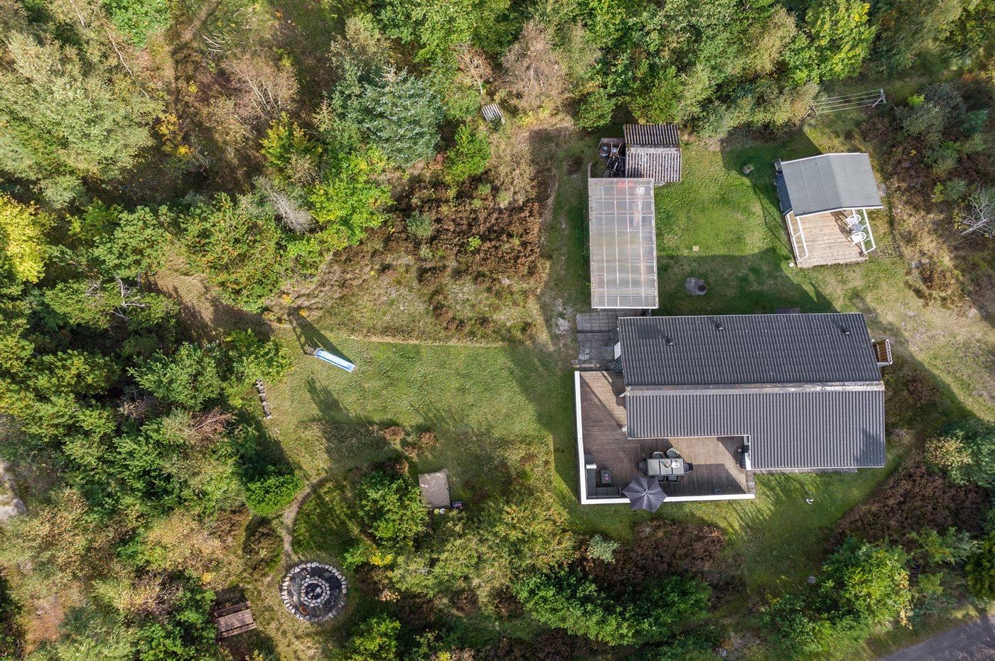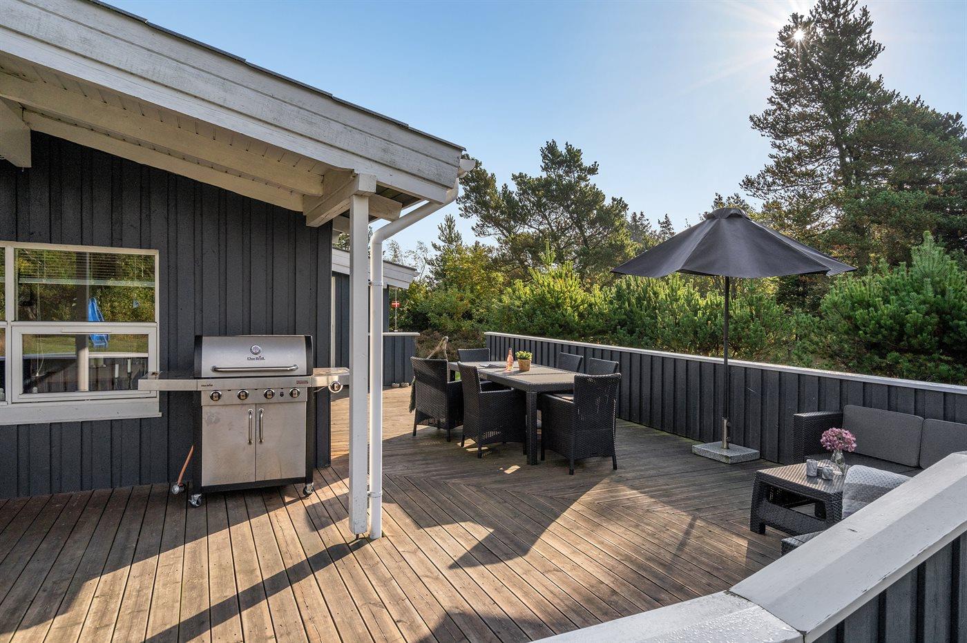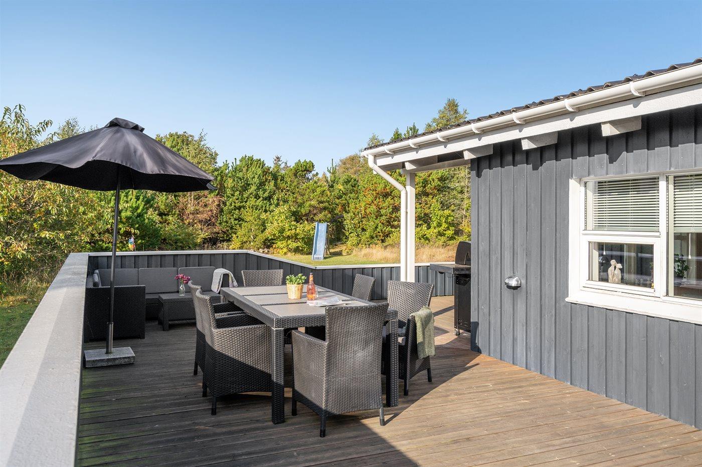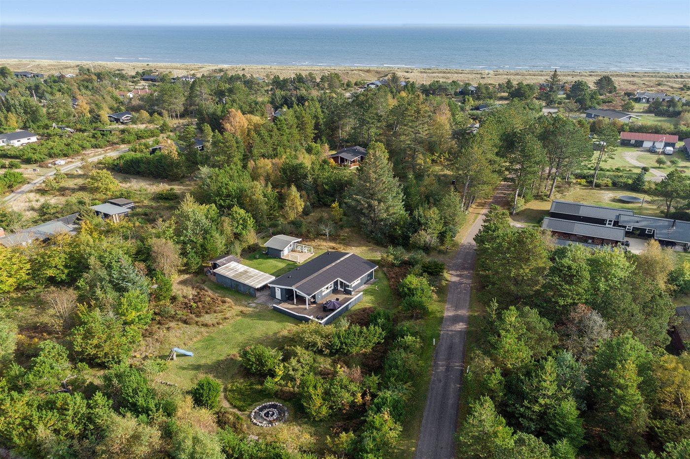 Ferieboligen er beliggende på en 2714 m² stor naturgrund. Der er 250 m til havet. Nærmeste forretning er beliggende i en afstand af 8000 m. Til ferieboligen hører 75 m² terrasseareal. Desuden er der 8 m² overdækket terrasse. Gynge. Rutchebane. Udendørs bruser. Grill til rådighed. Der er installeret stik til opladning af elbil. Parkering ved ferieboligen.