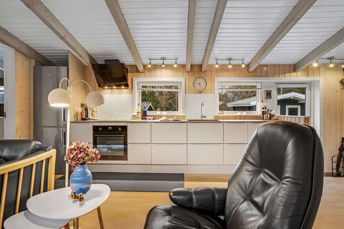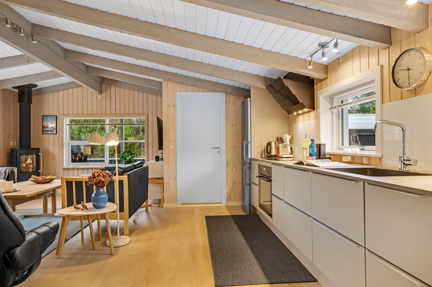 Køkkenet er udstyret med 1 køleskab. Der er 4 induktionskogeplader, varmluftovn, mikrobølgeovn samt opvaskemaskine.