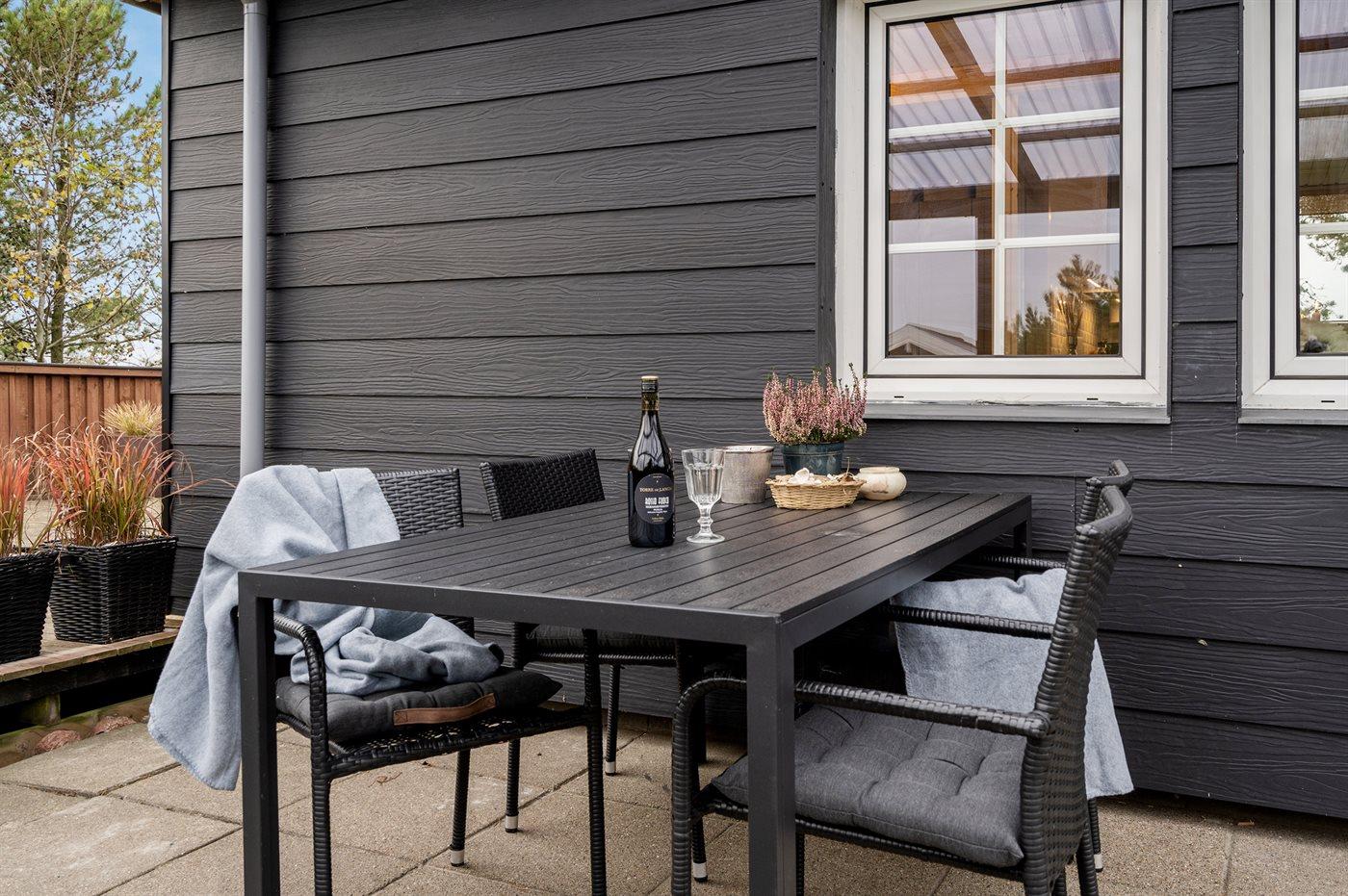 Ferieboligen er beliggende på en 1177 m² stor naturgrund. Der er 100 m til havet. Nærmeste forretning er beliggende i en afstand af 8000 m. Der er en golfbane i en afstand af 12000 m. Til ferieboligen hører 50 m² terrasseareal. Gynge. Der ligger en legeplads i en afstand af 1600 m. Udendørs bruser. Grill til rådighed. Parkering ved ferieboligen.