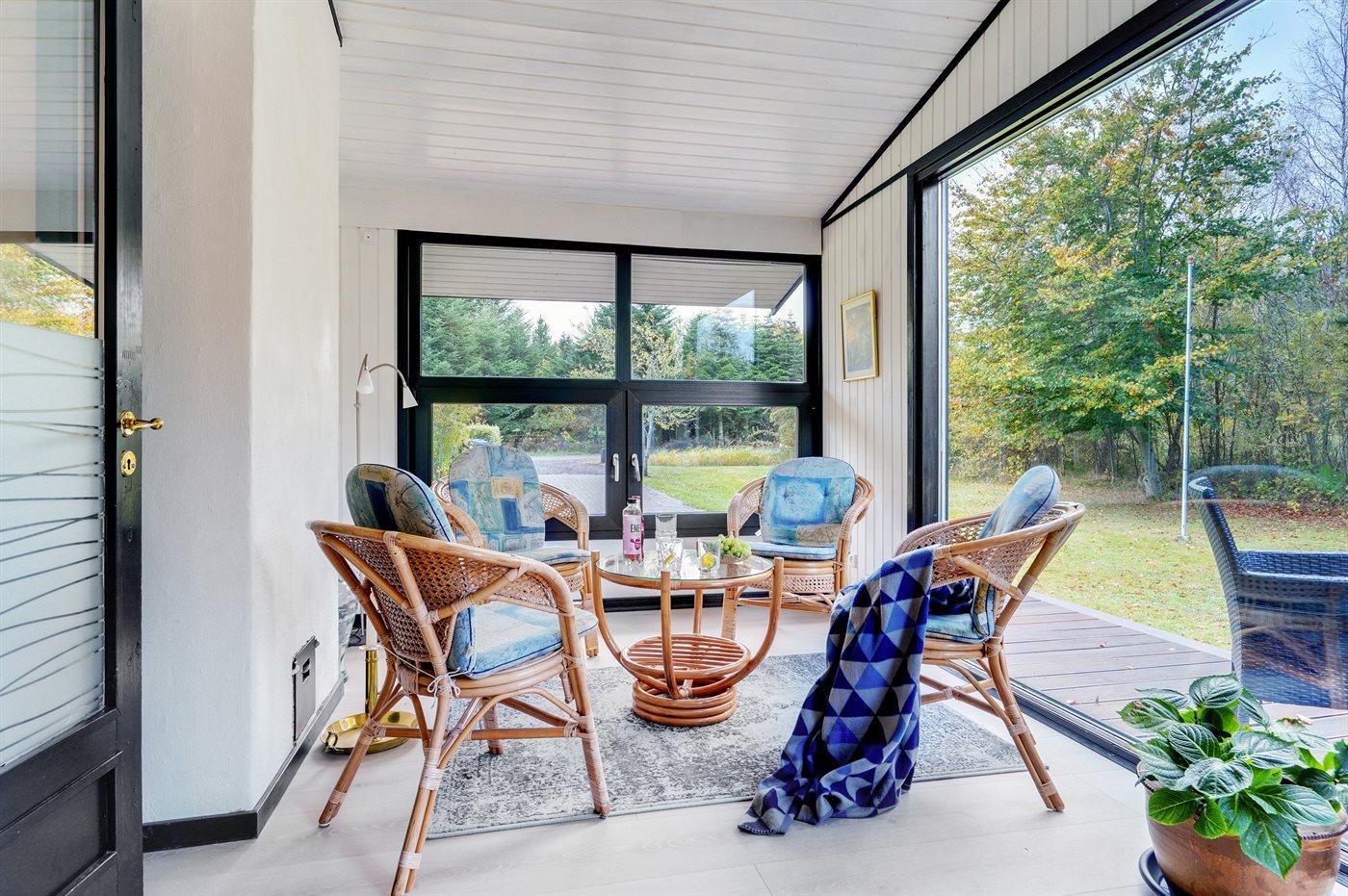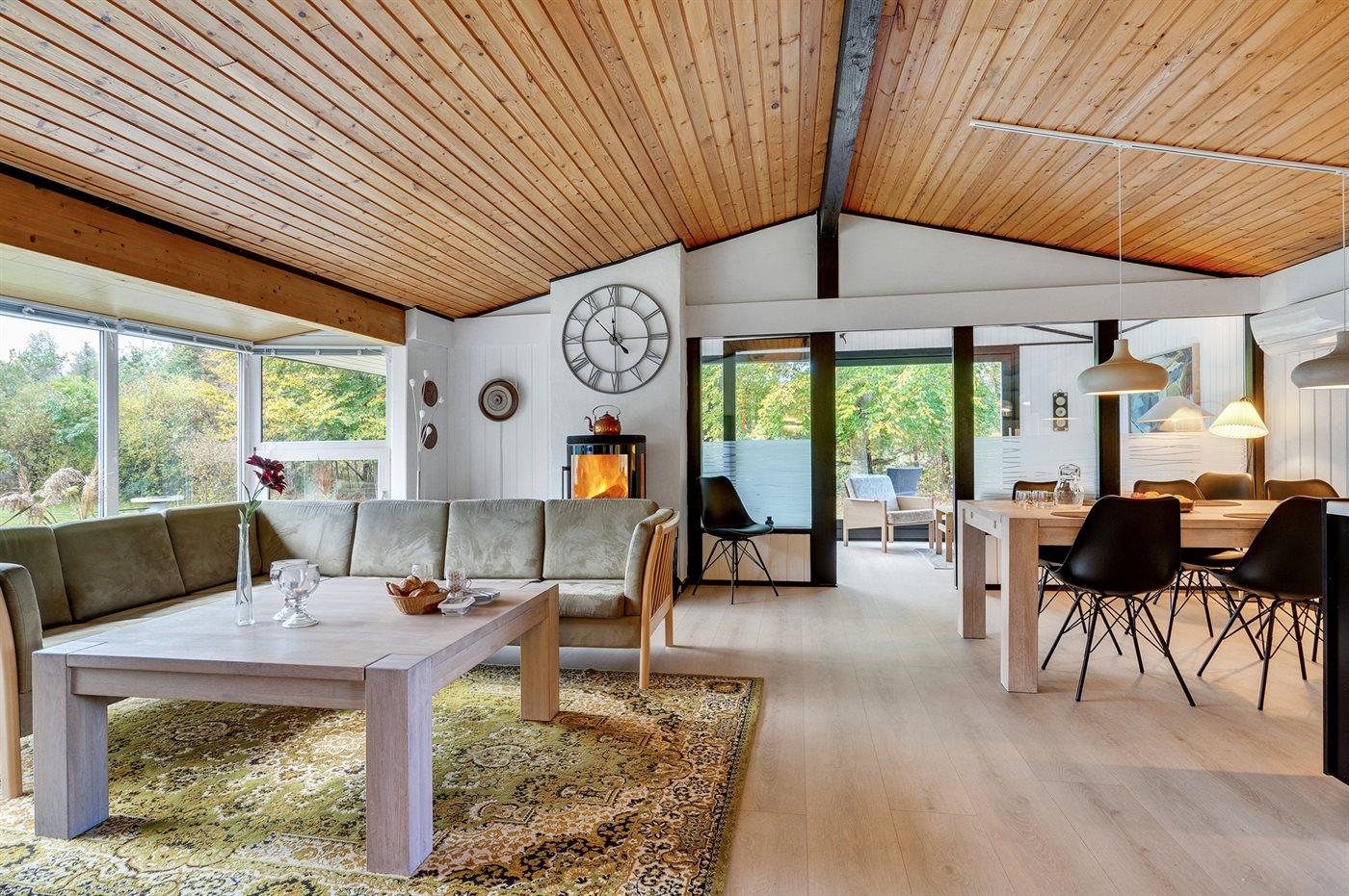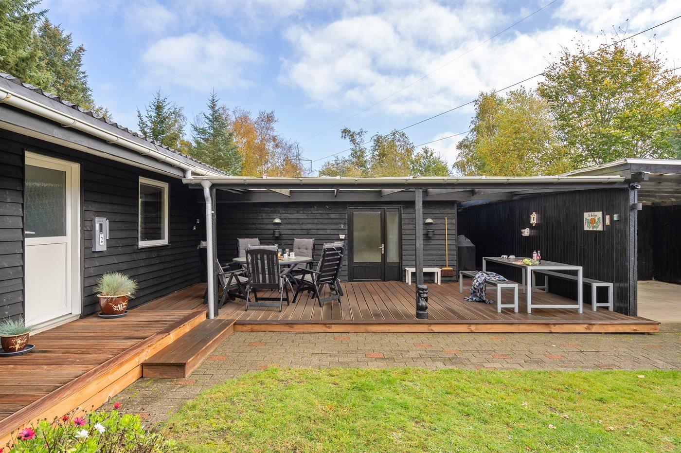 Et flot sommerhus, som er nænsomt renoveret i 2022, og hvortil der hører flere skønne terrasser, heraf en overdækket således der er god mulighed for at finde en plads i solen eller et sted med læ. På den store grund, som er omkranset af skov, er der god mulighed for at tilbringe masser af timer i det fri og der er gode muligheder for at se dådyr.