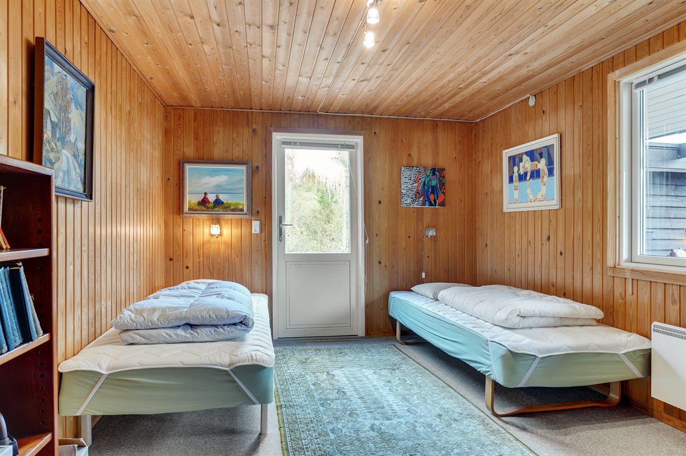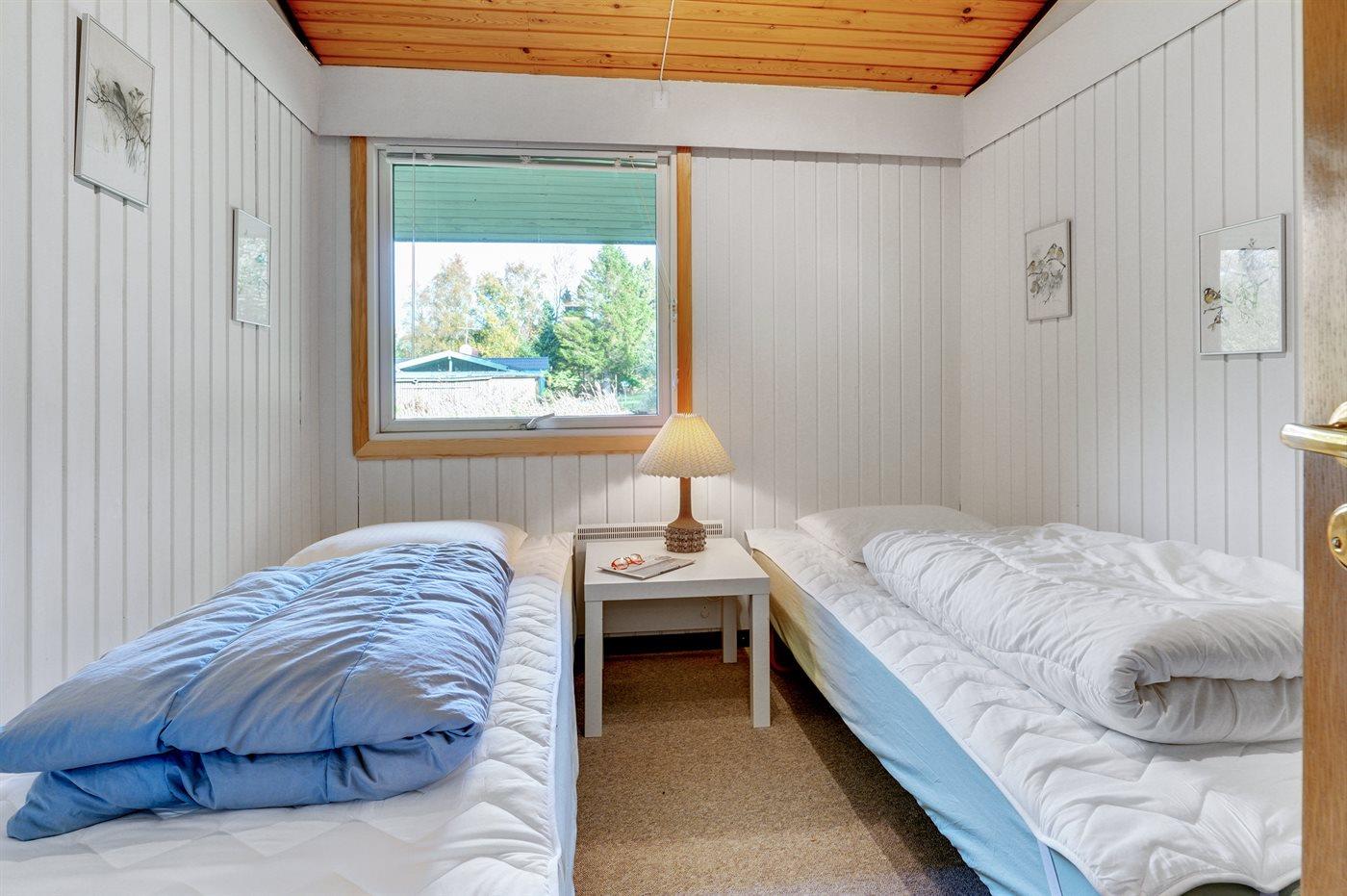 Der er i alt 3 soveværelser. Sovepladserne fordeler sig på: 2 sovepladser i dobbeltseng. 4 sovepladser i enkeltsenge. Derudover er der 1 stk. barneseng.