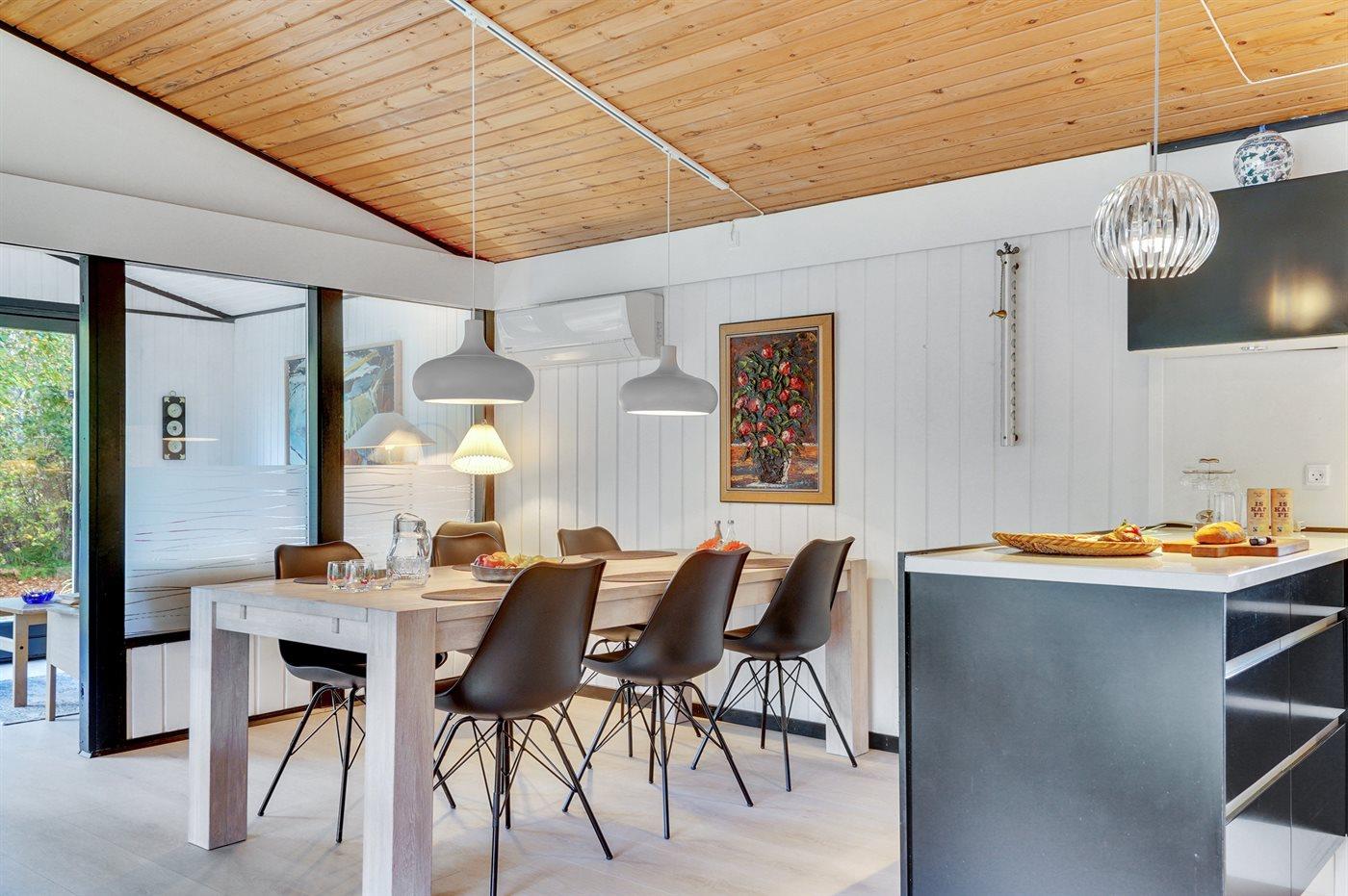 Køkkenet er udstyret med 1 køleskab. Der er 4 induktionskogeplader, varmluftovn, mikrobølgeovn samt opvaskemaskine.