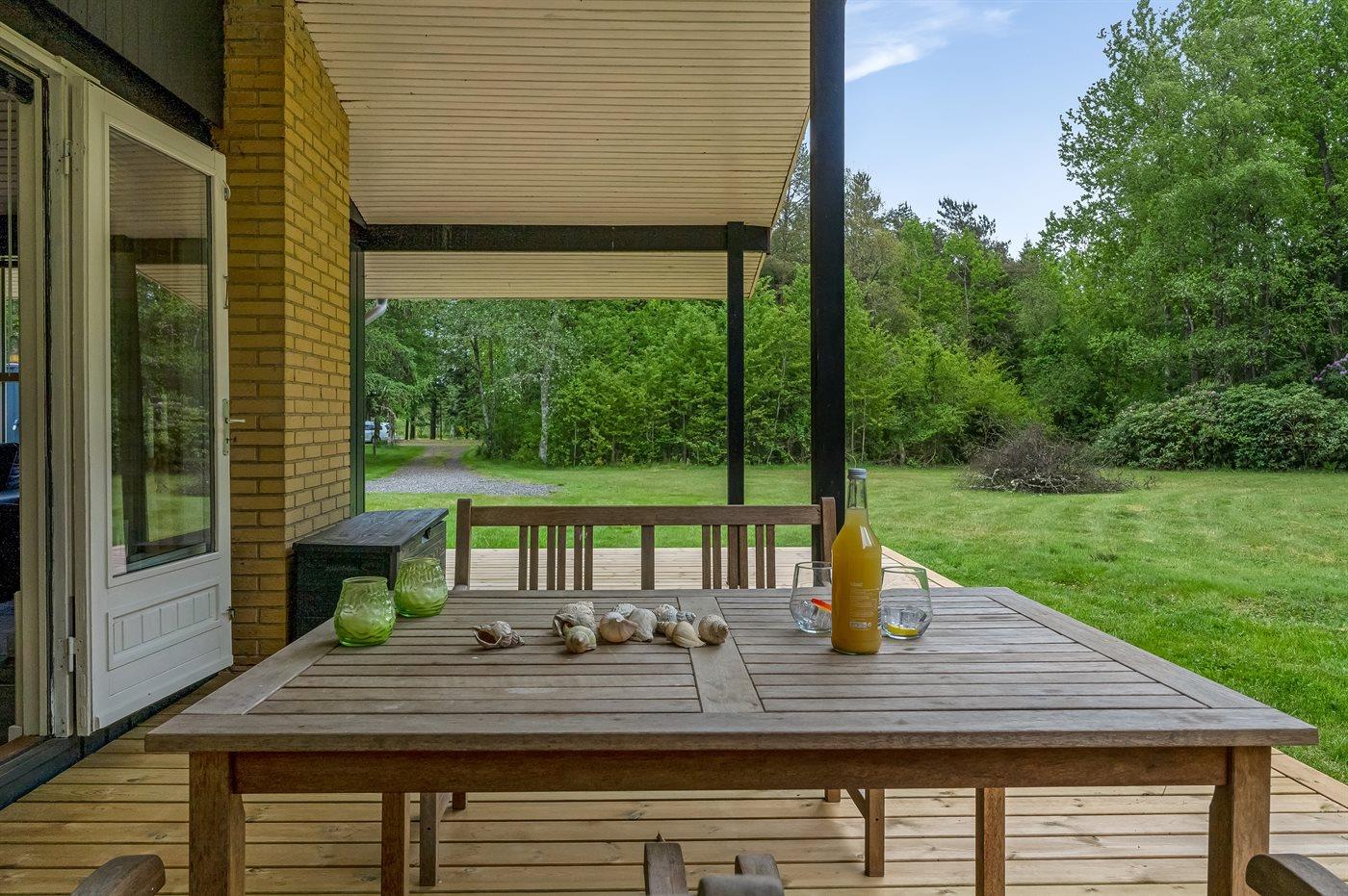 Lad roen sænke sig og nyd skønne timer på den hyggelige og delvist overdækkede terrasse, og når sulten melder sig kan der tilberedes et lækkert måltid mad på grillen.