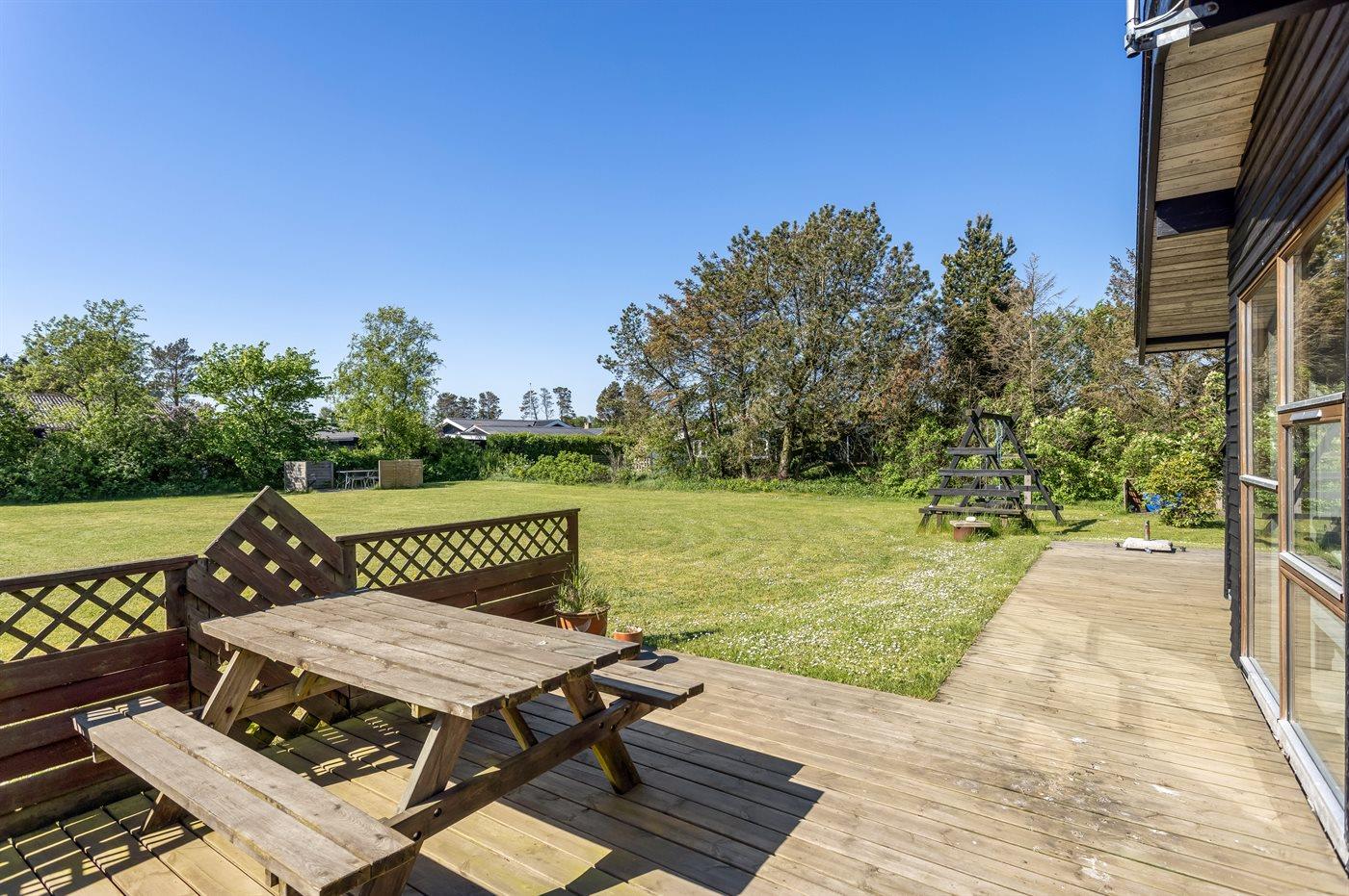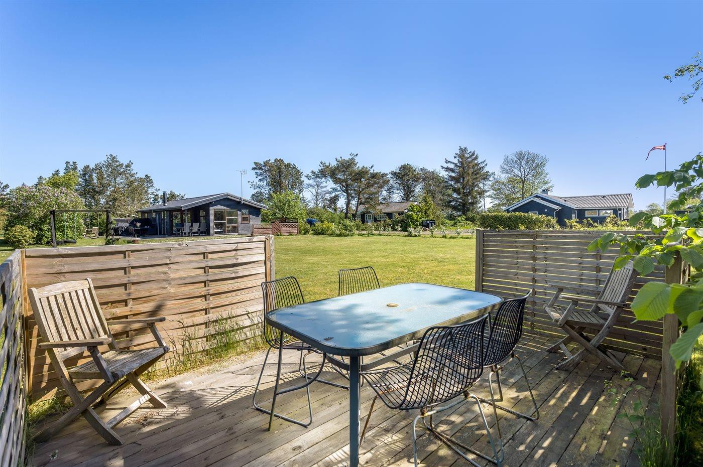 Ferieboligen er beliggende på en 1600 m² stor havegrund. Der er 450 m til havet. Nærmeste forretning er beliggende i en afstand af 5500 m. Til ferieboligen hører åbent terrasseareal. Desuden er der overdækket terrasse. Gynge. Sandkasse. Grill til rådighed. Parkering ved ferieboligen.
