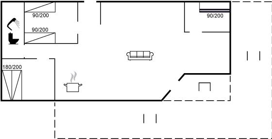 Der er i alt 3 soveværelser. Sovepladserne fordeler sig på: 2 sovepladser i dobbeltseng. 2 sovepladser i enkeltsenge. 2 sovepladser i køjeseng.
