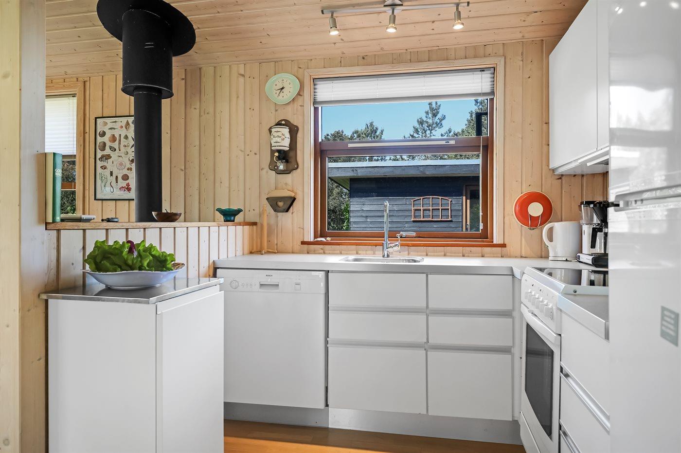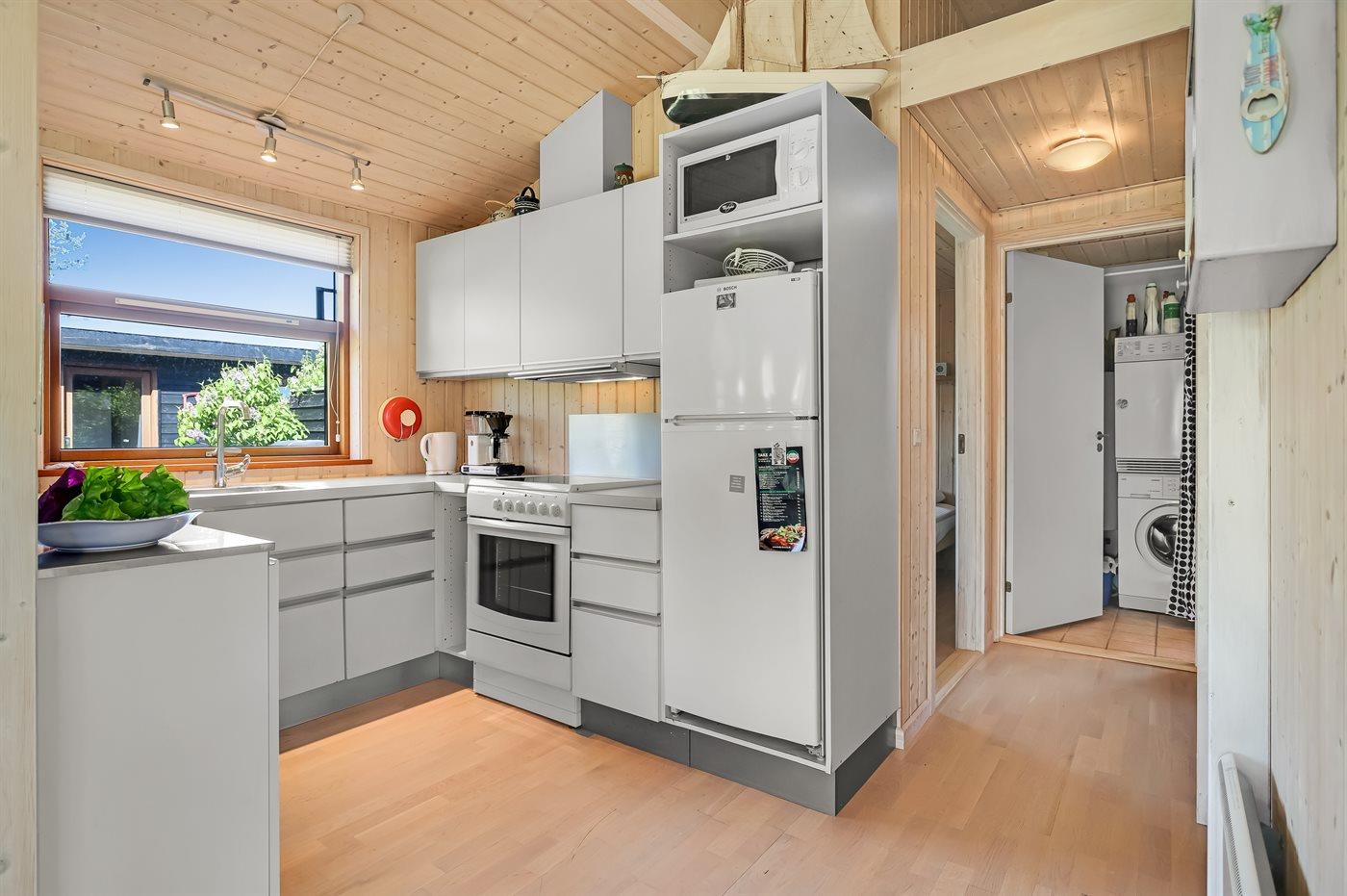 Køkkenet er udstyret med 1 køleskab. Der er 4 keramiske kogeplader, varmluftovn, mikrobølgeovn samt opvaskemaskine.