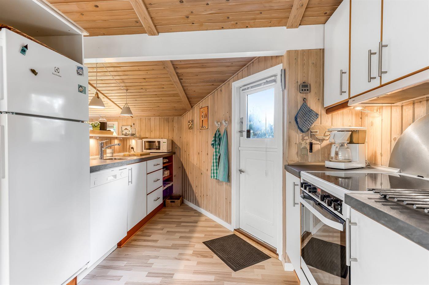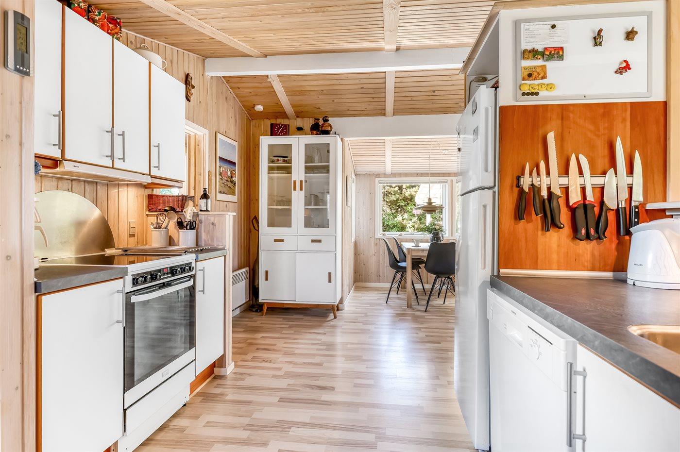 Køkkenet er udstyret med 1 køleskab. Der er 4 keramiske kogeplader, varmluftovn, mikrobølgeovn samt opvaskemaskine.