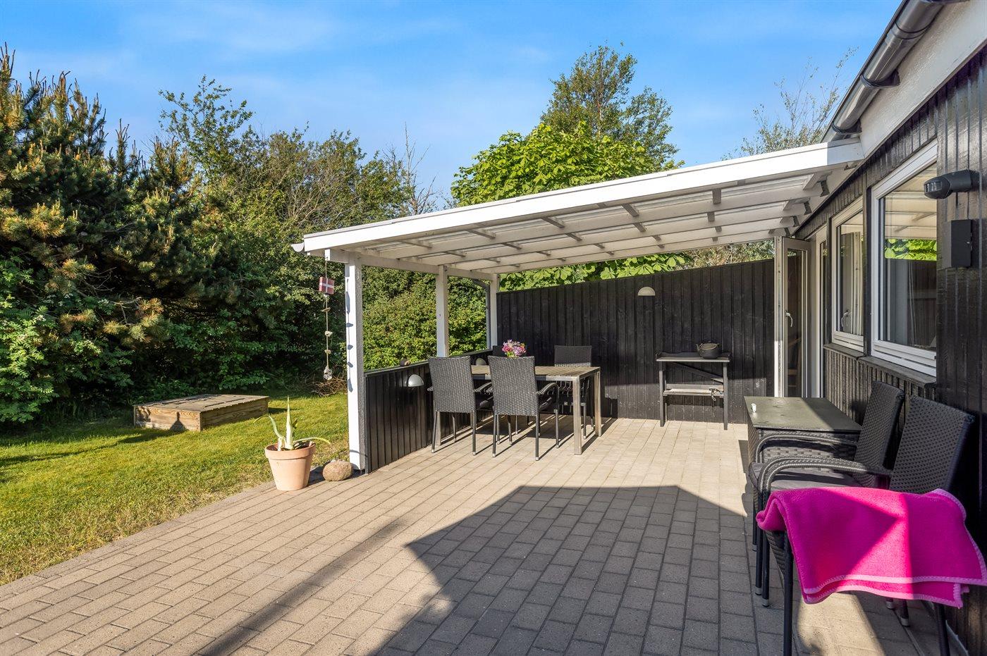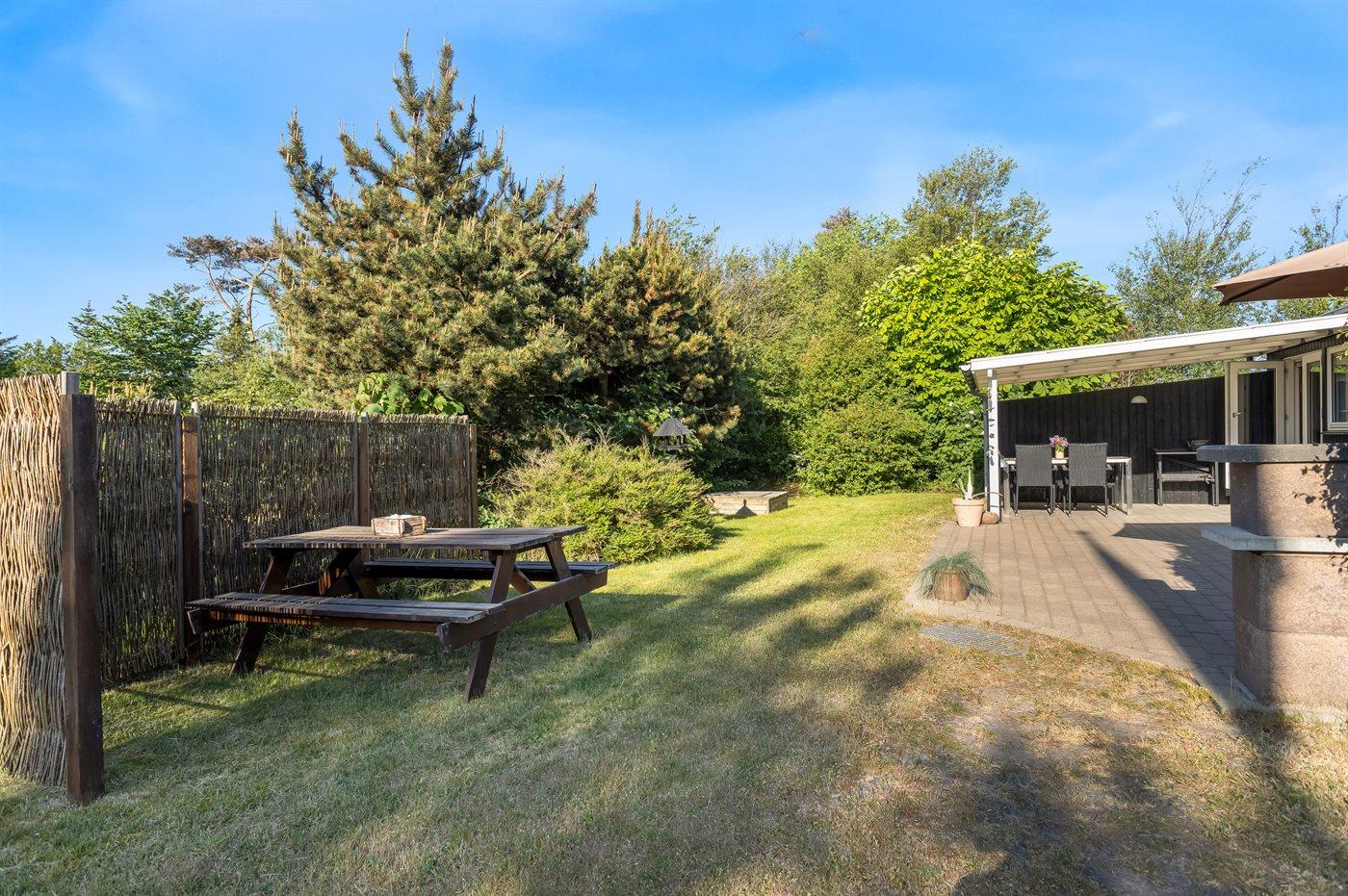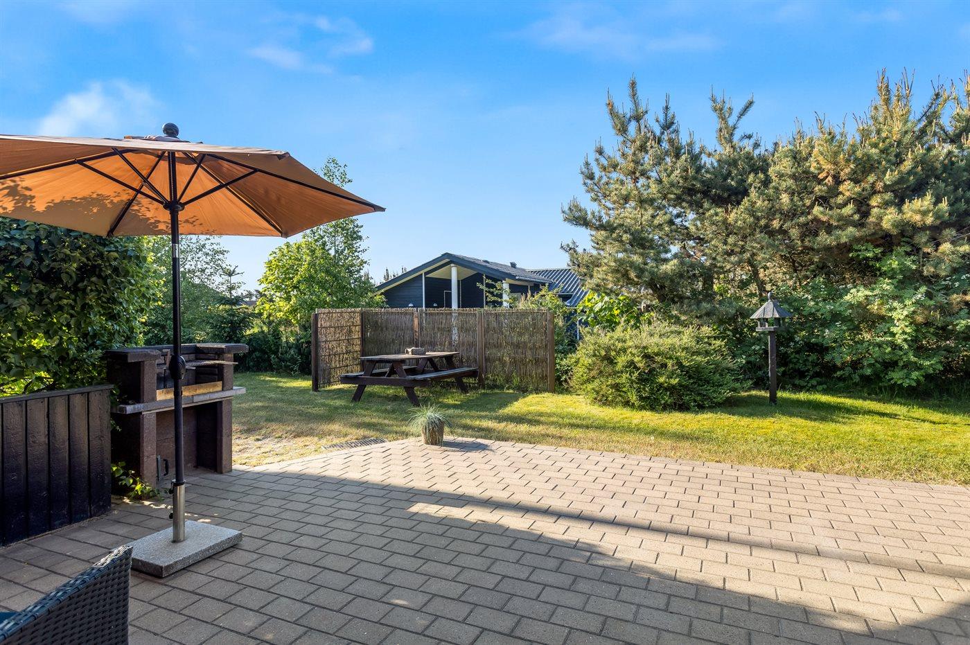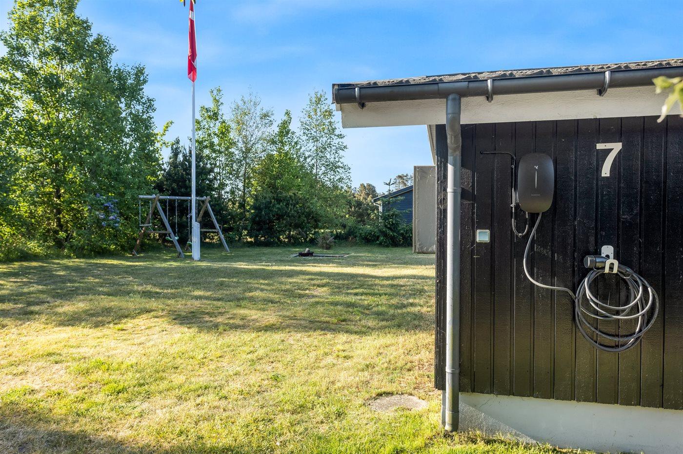 Ferieboligen er beliggende på en 938 m² stor havegrund. Der er 200 m til havet. Nærmeste forretning er beliggende i en afstand af 5500 m. Til ferieboligen hører åbent terrasseareal. Desuden er der overdækket terrasse. Der er redskabsrum. Gynge. Sandkasse. Bålsted. Grill til rådighed. Der er installeret stik til opladning af elbil. Type 2 stik. Med 11 kW ladeeffekt. Parkering ved ferieboligen.