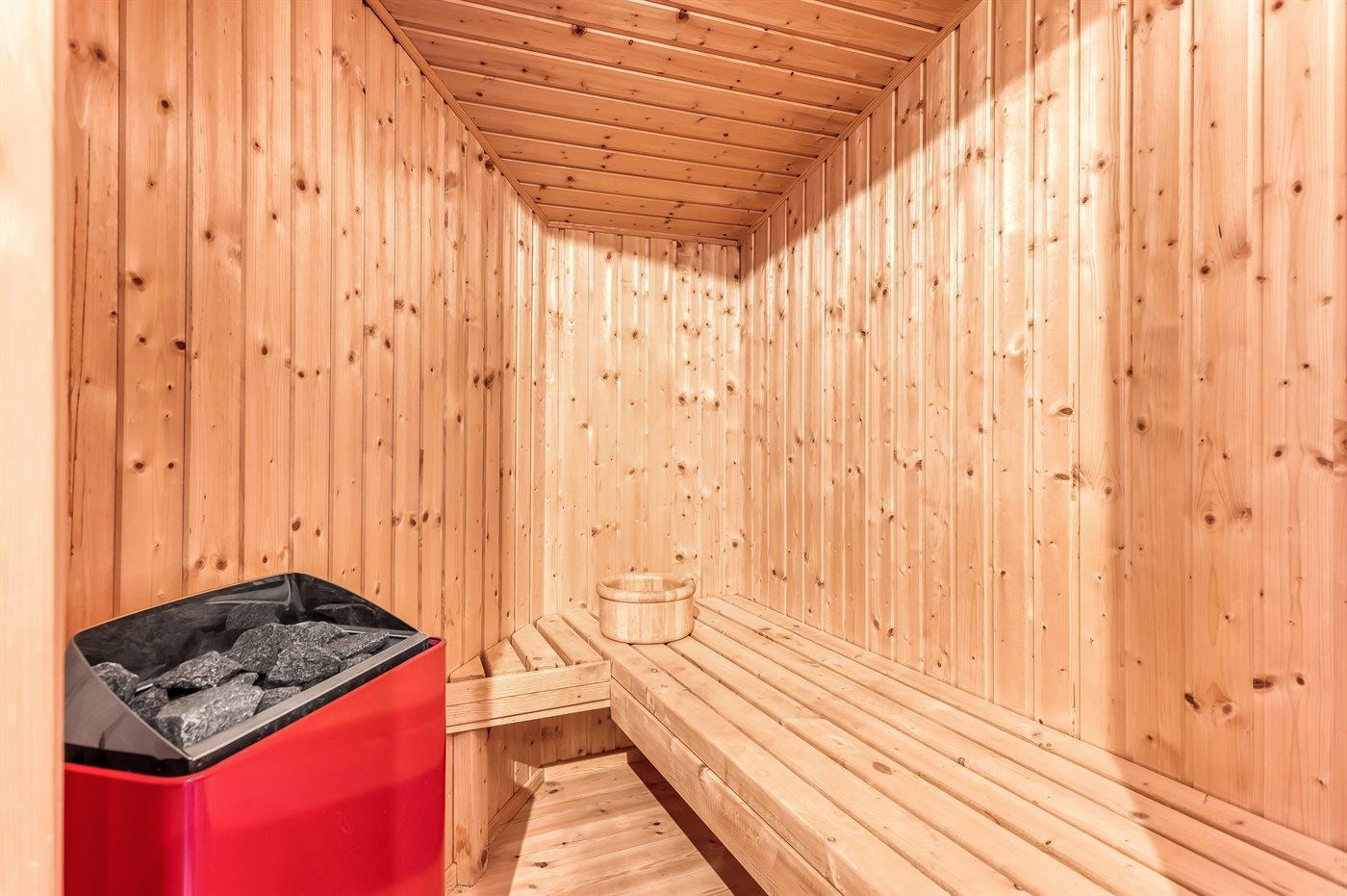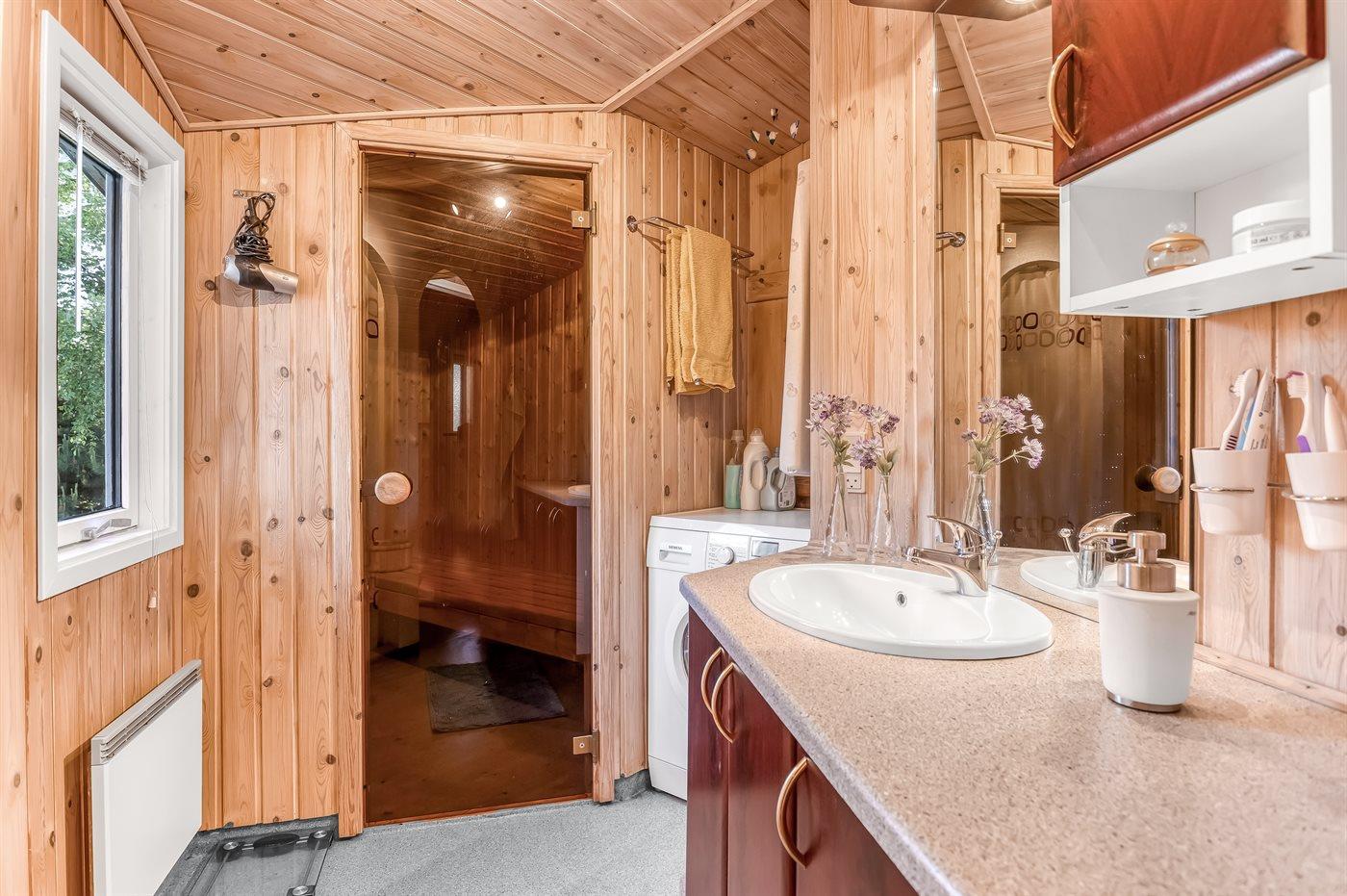 Der er 1 badeværelse med bruseniche og 1 toilet. I saunaen er der mulighed for afslapning.