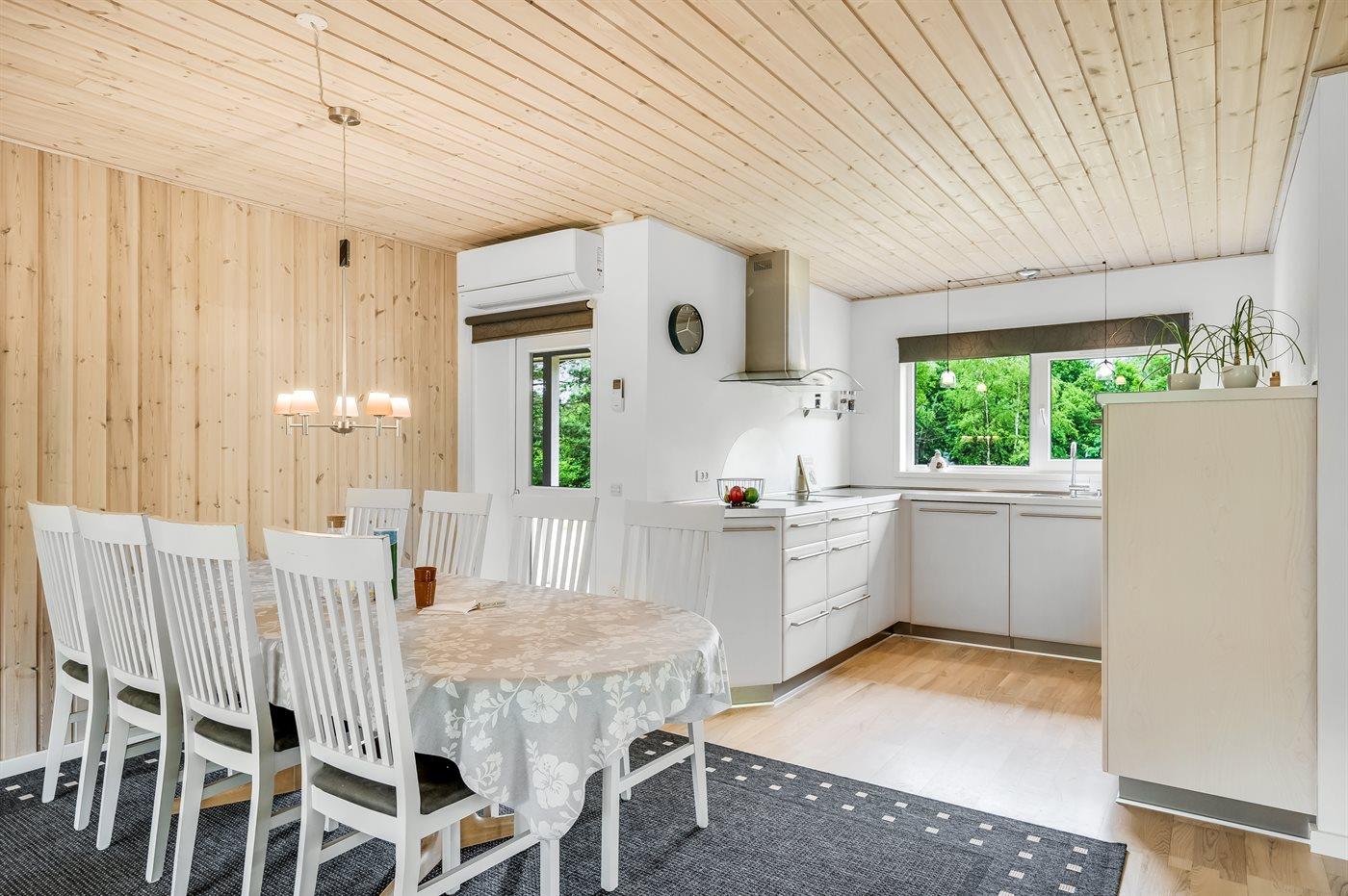 Køkkenet er udstyret med 1 køleskab. Der er 4 induktionskogeplader, varmluftovn, mikrobølgeovn samt opvaskemaskine.