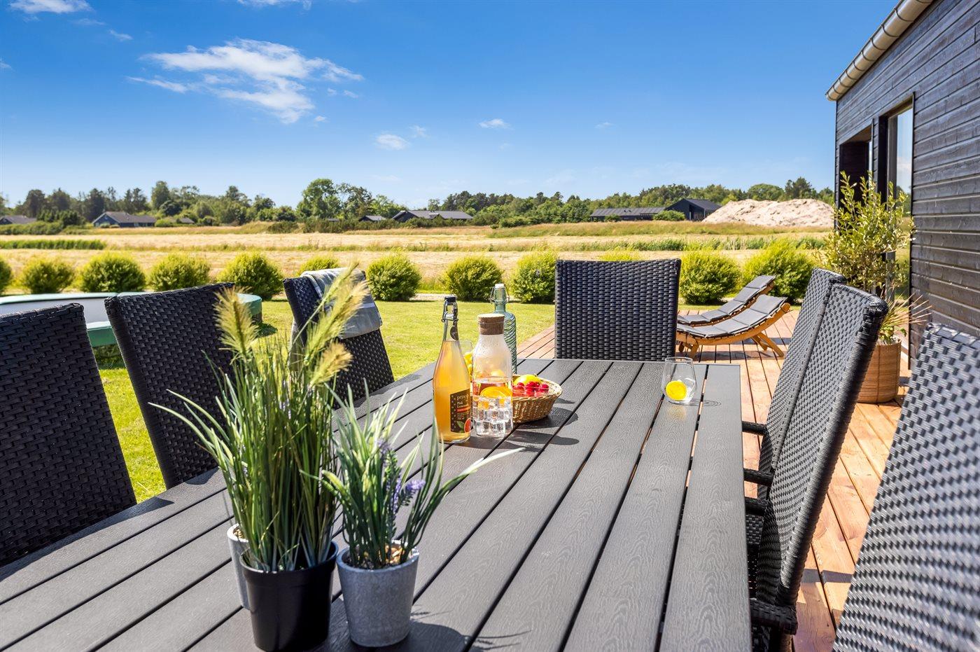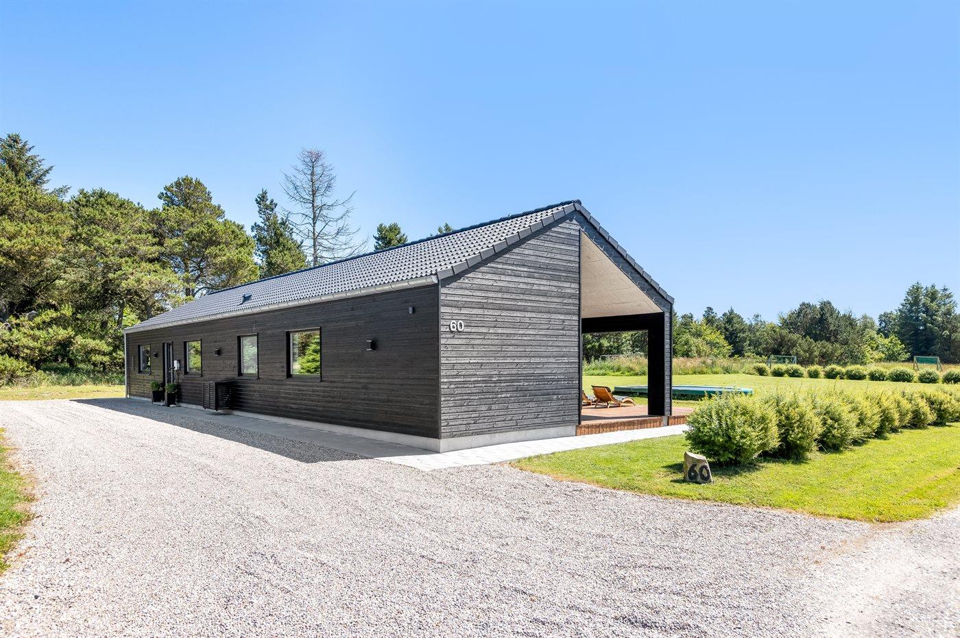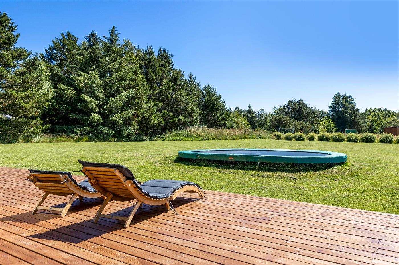 Ferieboligen er beliggende på en 1979 m² stor havegrund. Der er 450 m til havet. Nærmeste forretning er beliggende i en afstand af 6500 m. Der er en golfbane i en afstand af 8000 m. Desuden er der 10 m² overdækket terrasse. Til ferieboligen hører åbent terrasseareal. Trampolin. Fodboldmål. Udendørs sauna. Gasgrill til rådighed. Der er installeret stik til opladning af elbil. Type 2 stik. Parkering ved ferieboligen.