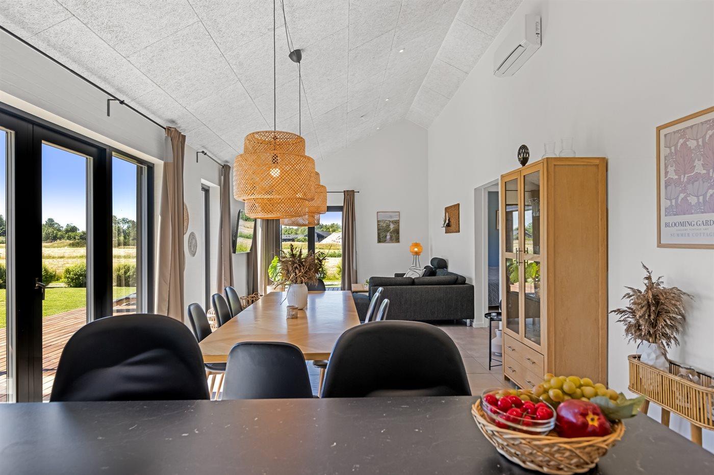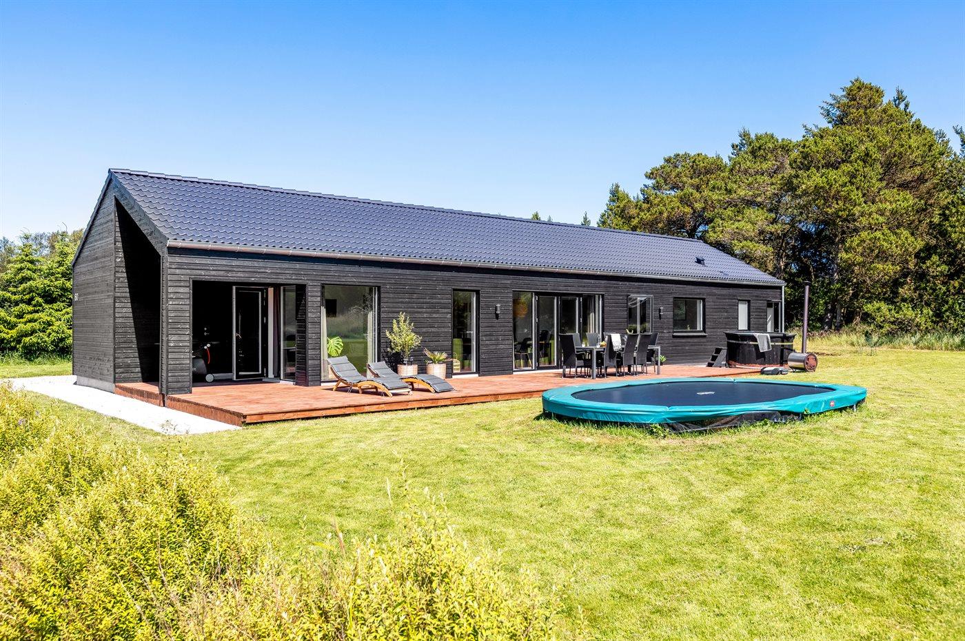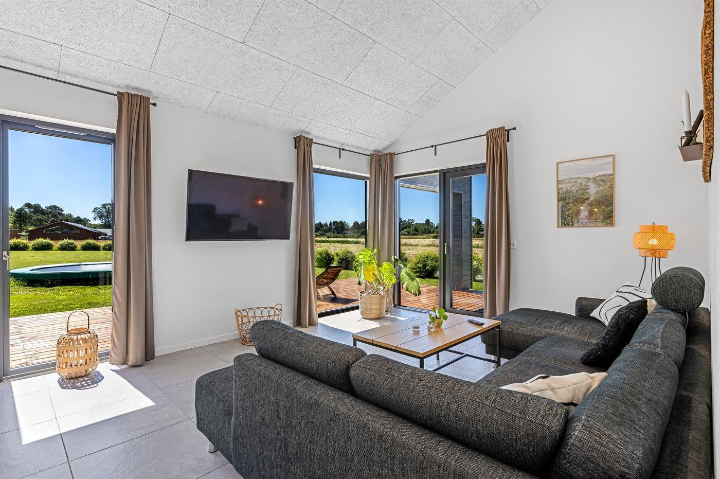 Moderne sommerhus i Lyngså med spa, aktivitetsrum og elbil-lader nær børnevenlig strand.