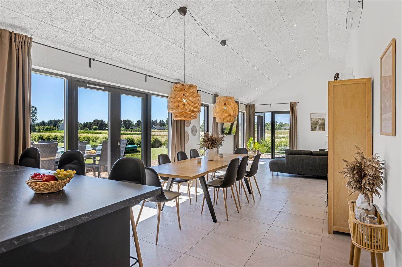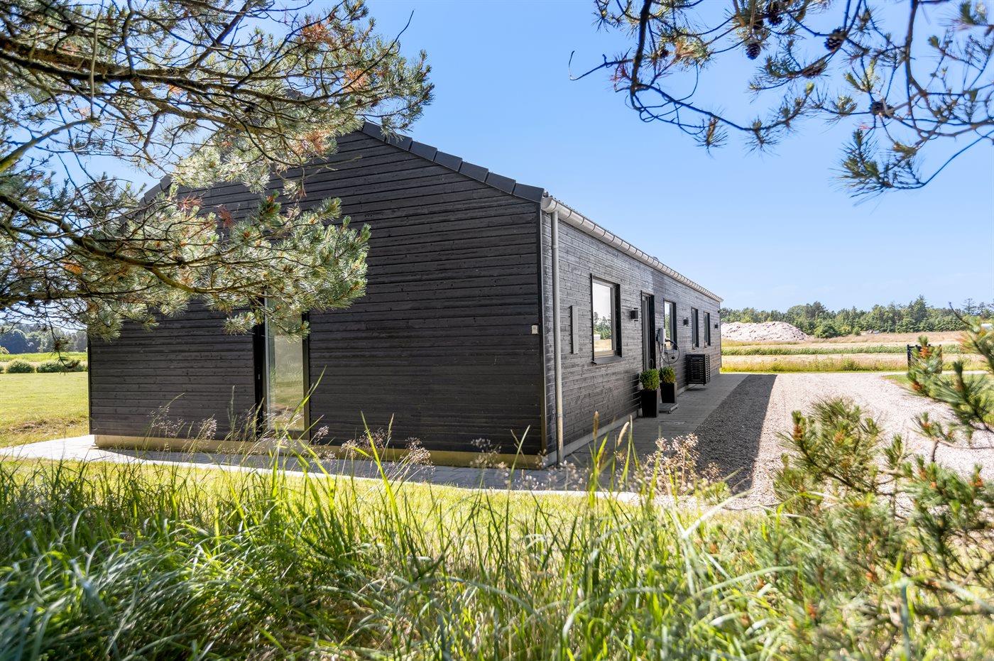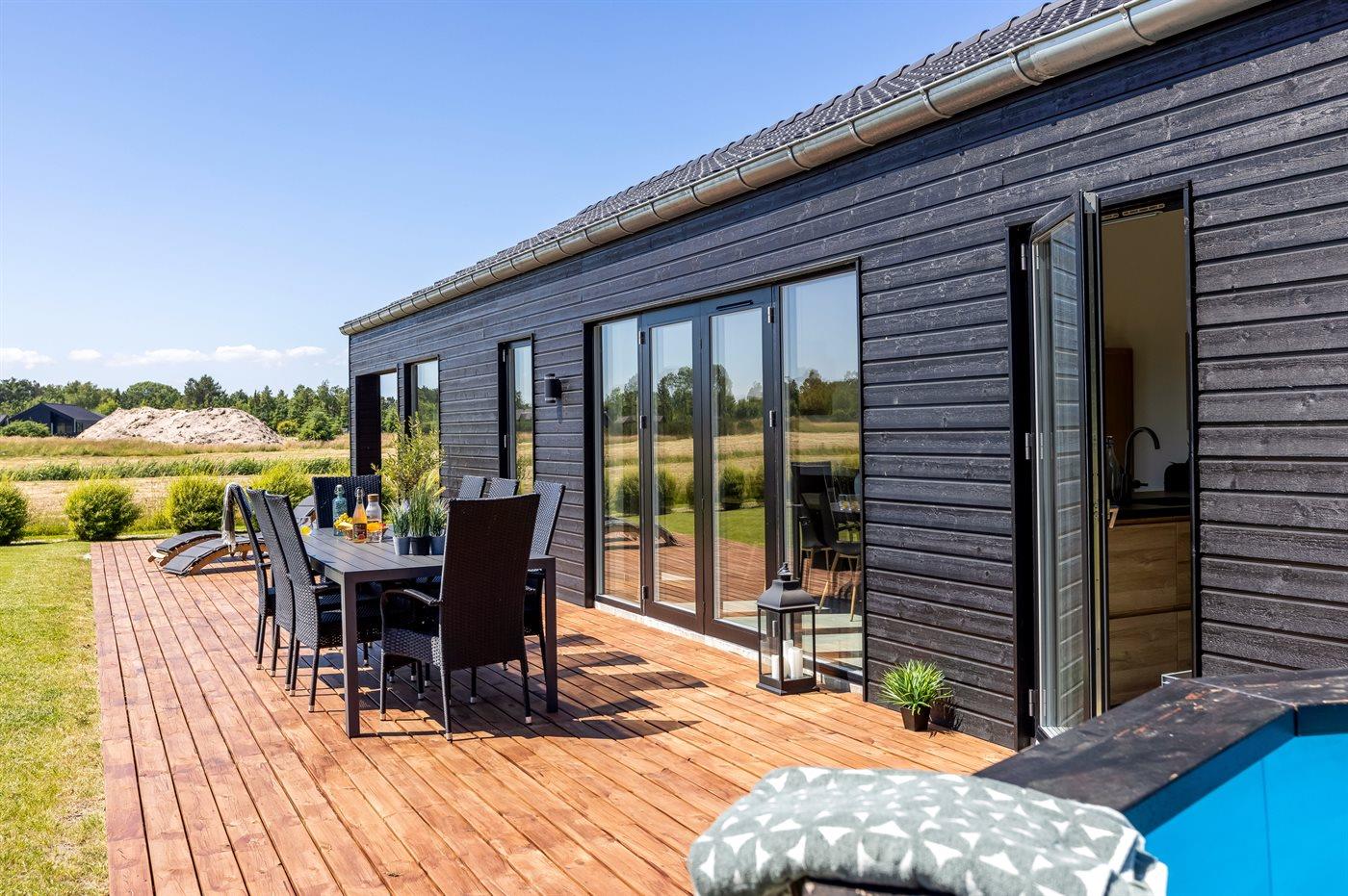 Moderne sommerhus i Lyngså med spa, aktivitetsrum og elbil-lader nær børnevenlig strand.