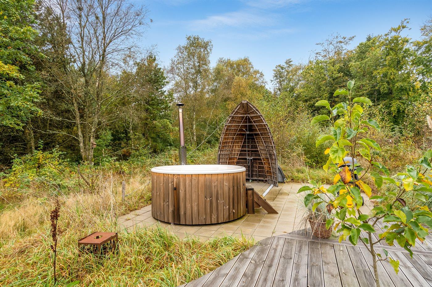 Der er mulighed for afslapning i det udendørs vildmarkskar til 5 personer.