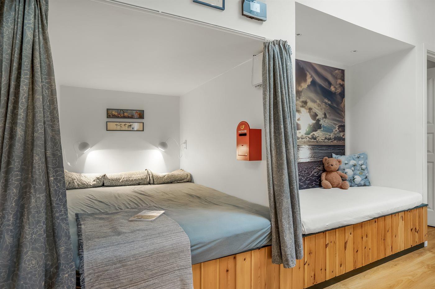 Der er i alt 3 soveværelser. Sovepladserne fordeler sig på: 6 sovepladser i dobbeltsenge. Derudover er der 1 stk. barneseng.