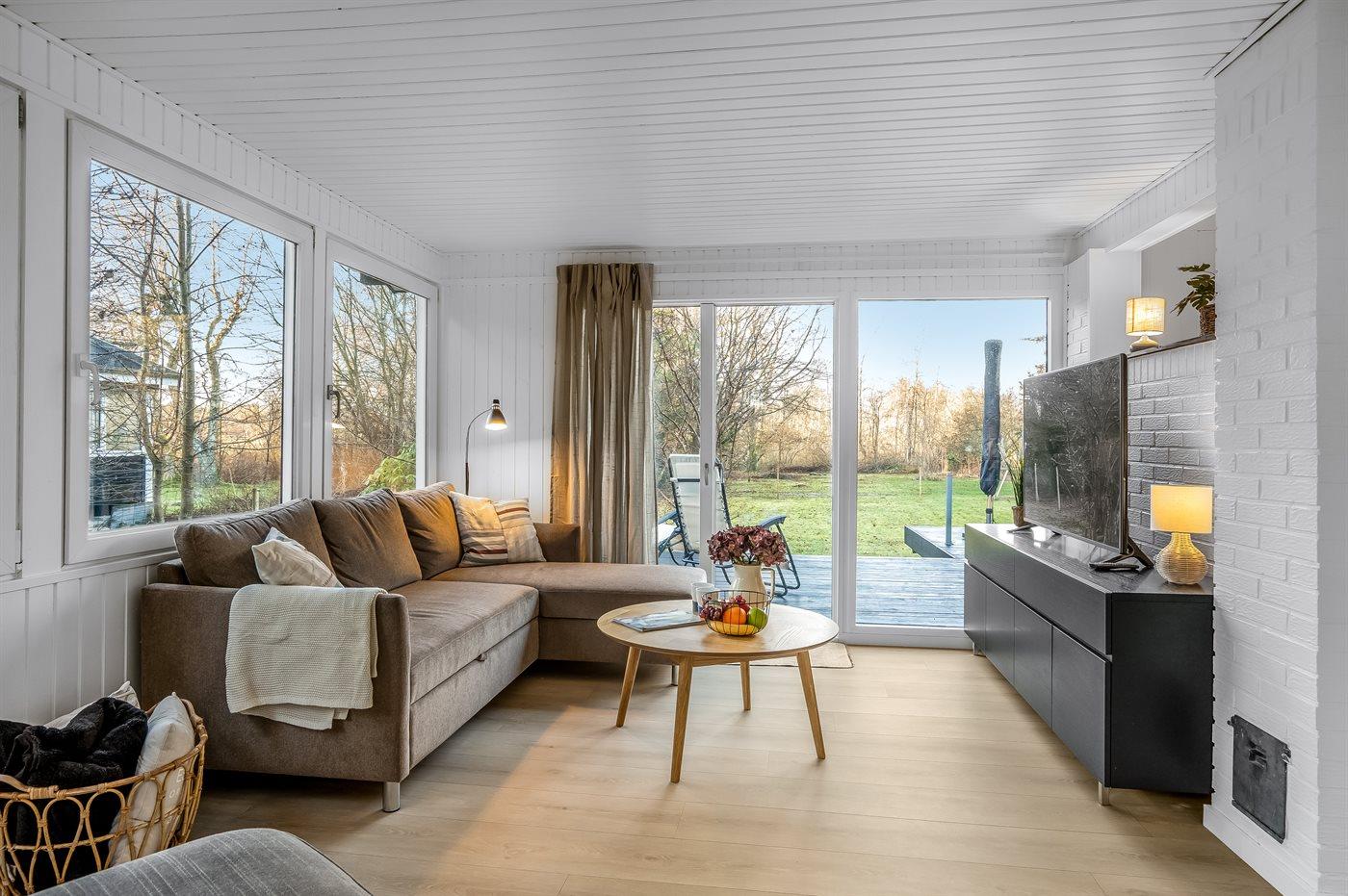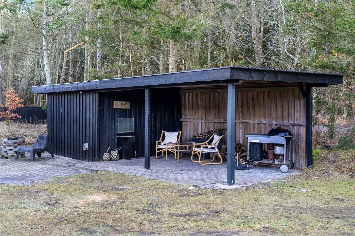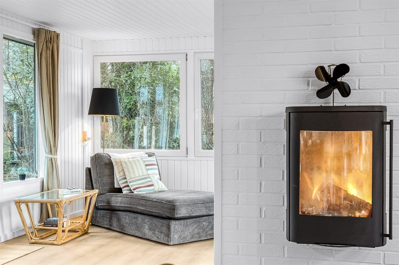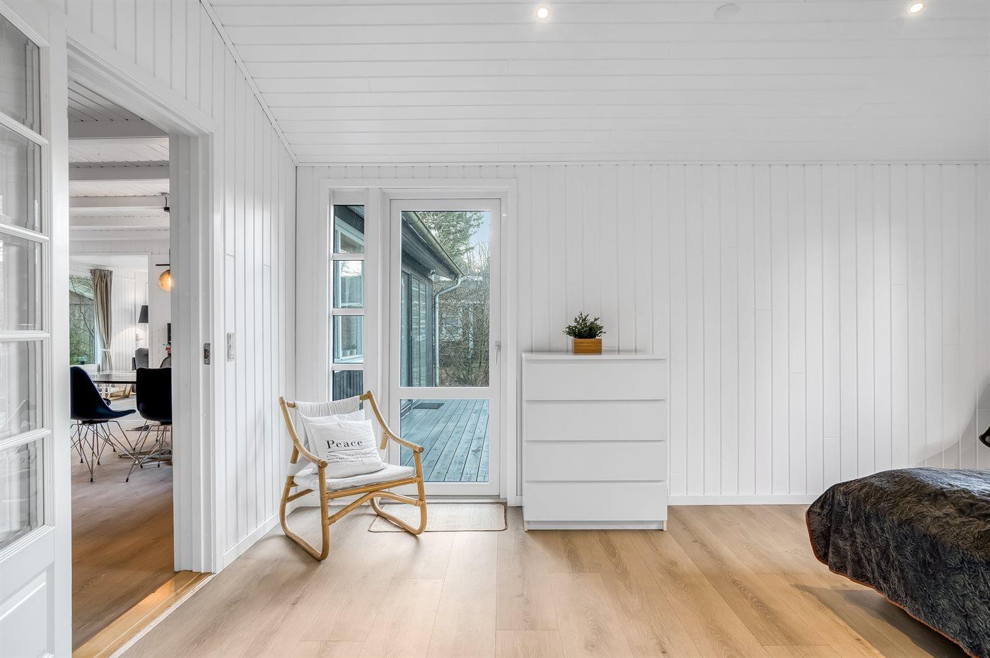 Udendørs er grunden fuldt indhegnet, så børn og kæledyr kan lege frit og trygt. I bunden af haven, bag hegnet, finder du en lille sø, der giver et ekstra strejf af natur. På terrassen kan du nyde måltider fra husets kulgrill og slappe af i de rolige omgivelser.