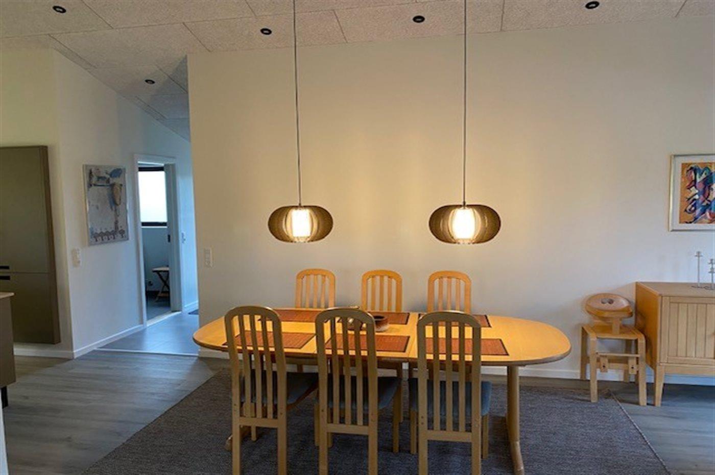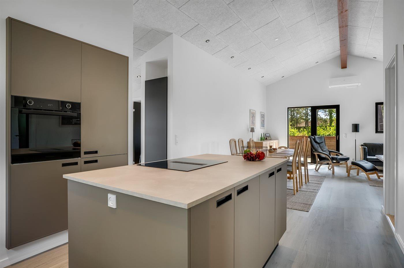Køkkenet er udstyret med 1 køleskab. Der er 4 induktionskogeplader, varmluftovn, mikrobølgeovn samt opvaskemaskine.