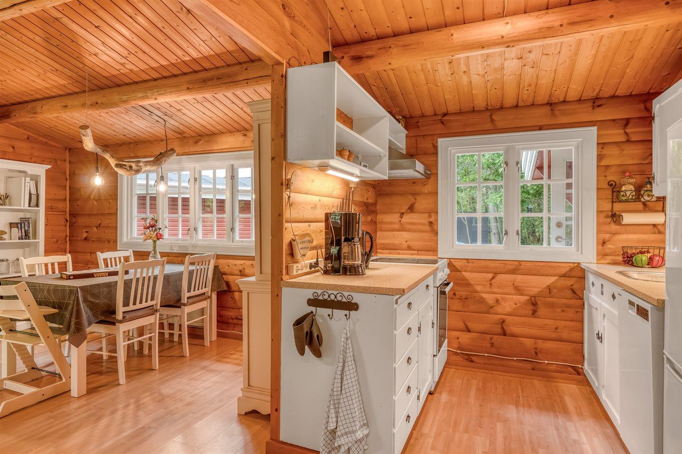 Køkkenet er udstyret med 1 køleskab. Der er 4 induktionskogeplader, varmluftovn, mikrobølgeovn, Airfryer samt opvaskemaskine.