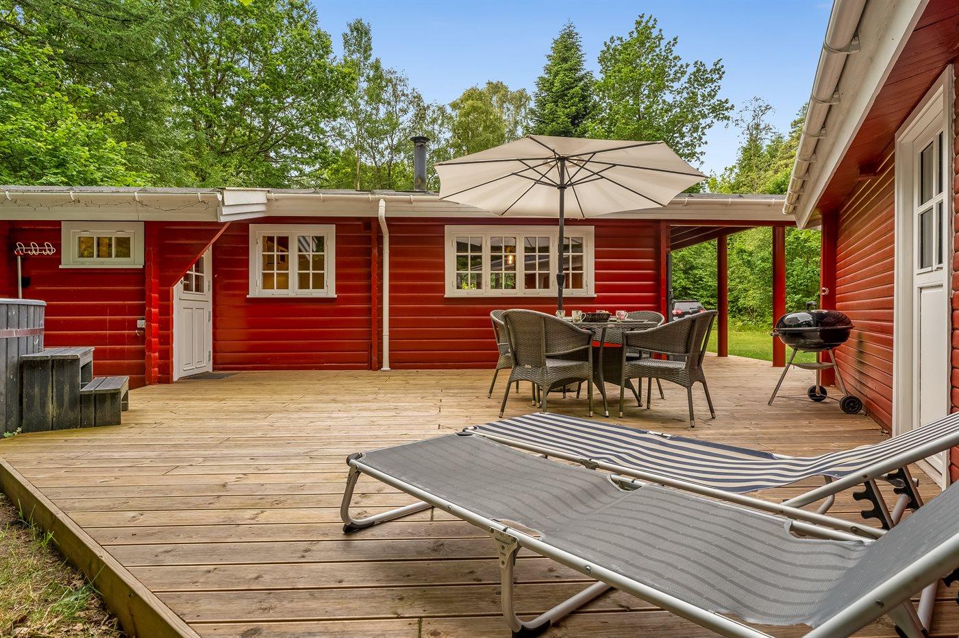 Skønt sommerhus i naturskønne omgivelser med vildmarkskar og flere terrasser til afslapning og samvær.
