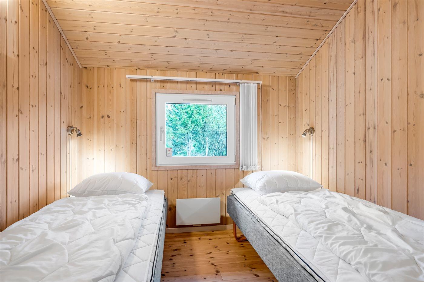 Der er i alt 4 soveværelser. Sovepladserne fordeler sig på: 6 sovepladser i dobbeltsenge. 2 sovepladser i enkeltsenge. Derudover er der 1 stk. barneseng.