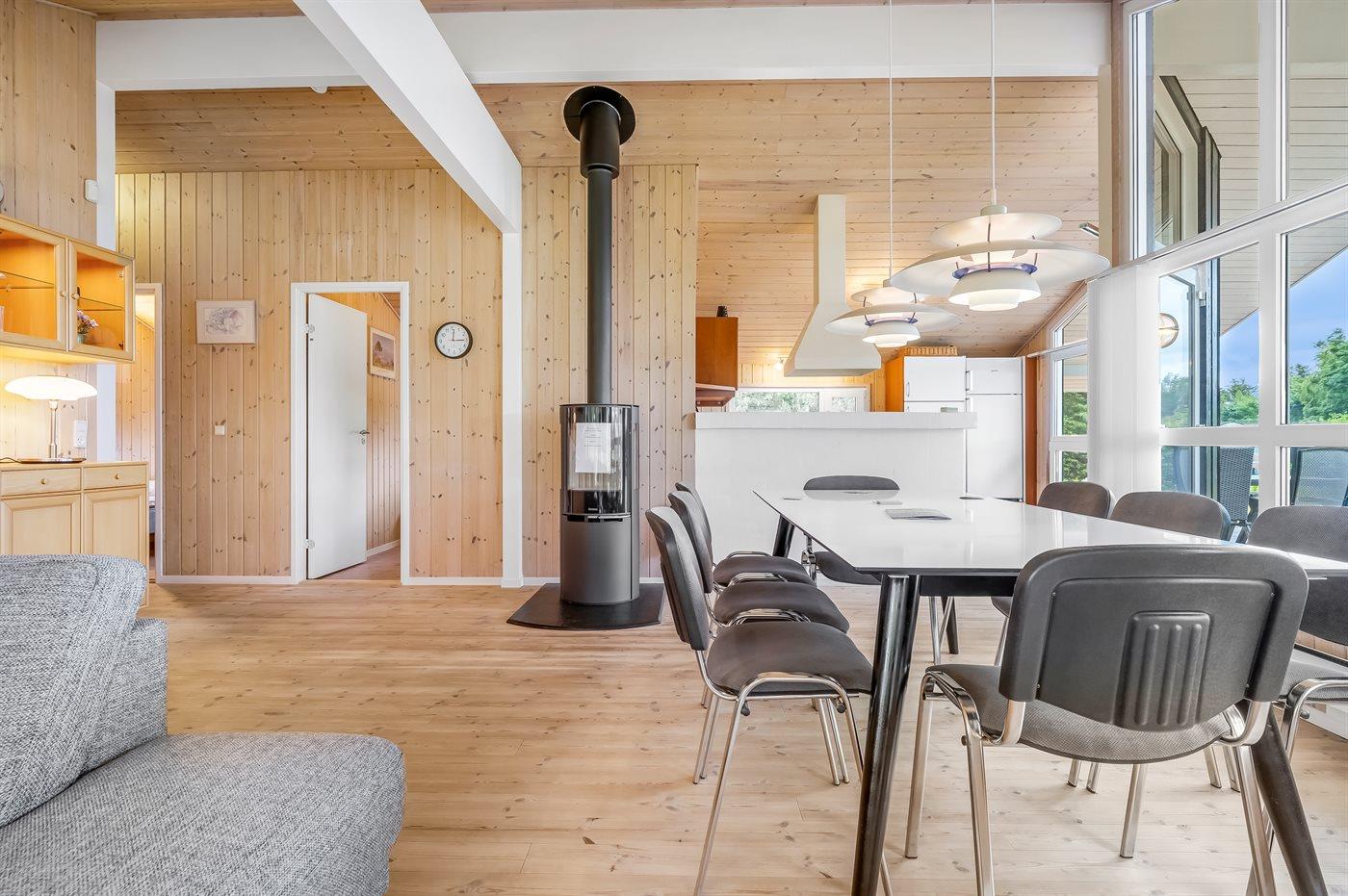 Køkkenet er udstyret med 1 køleskab. Der er 4 induktionskogeplader, varmluftovn samt opvaskemaskine.