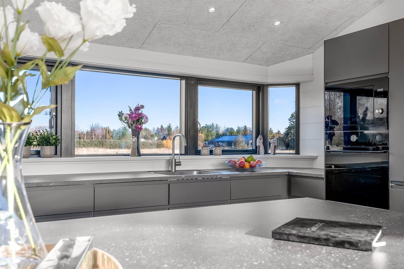 Køkkenet er udstyret med 1 køleskab. Der er 4 induktionskogeplader, varmluftovn, mikrobølgeovn samt opvaskemaskine.