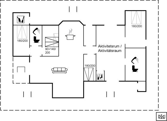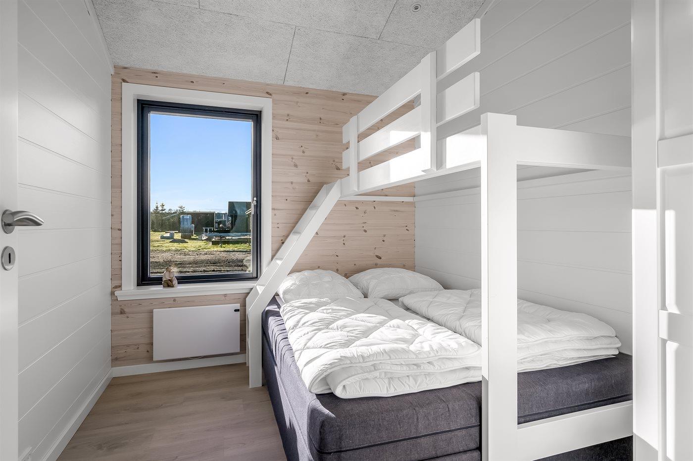 Der er i alt 4 soveværelser. Sovepladserne fordeler sig på: 6 sovepladser i dobbeltsenge. 2 sovepladser i enkeltsenge. 3 sovepladser i køjesenge. 2 af disse sovepladser befinder sig på husets hems. Derudover er der 1 stk. barneseng.