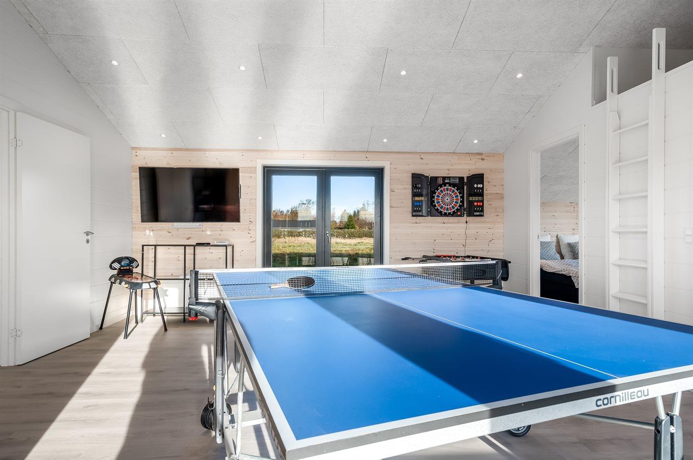 Slap af i den udendørs spa eller husets sauna, mens de, der ønsker lidt mere fart over feltet, kan hygge sig i aktivitetsrummet.