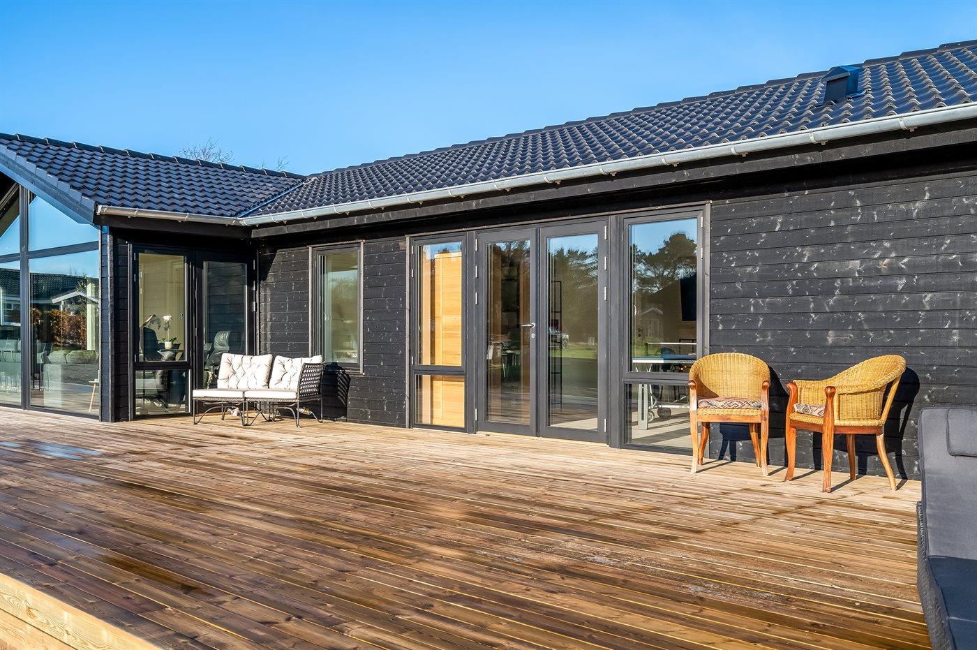Udelivet er i fokus med en stor og solrig terrasse – hvor der findes grill og rig mulighed for afslapning og samvær under åben himmel.