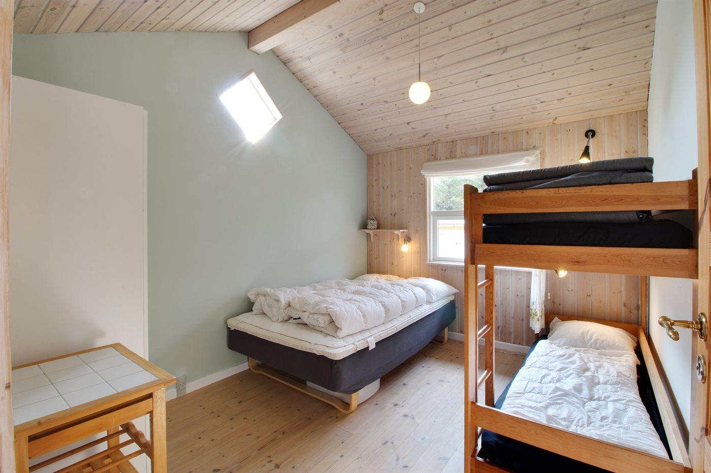 Der er i alt 3 soveværelser. Sovepladserne fordeler sig på: 2 sovepladser i dobbeltseng. 3 sovepladser i enkeltsenge. 2 sovepladser i køjeseng. 2 sovepladser på madrasser. 2 af disse sovepladser befinder sig på husets hems. Derudover er der 1 stk. barneseng.