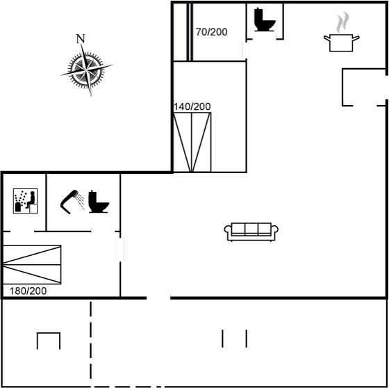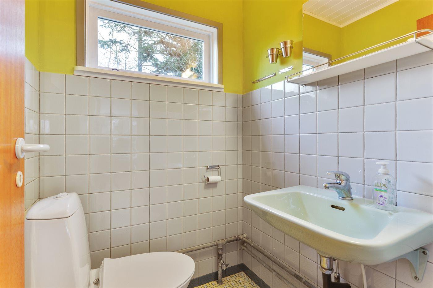 Der er 1 badeværelse med bruseniche og 2 toiletter, heraf 1 gæstetoilet I saunaen er der mulighed for afslapning.