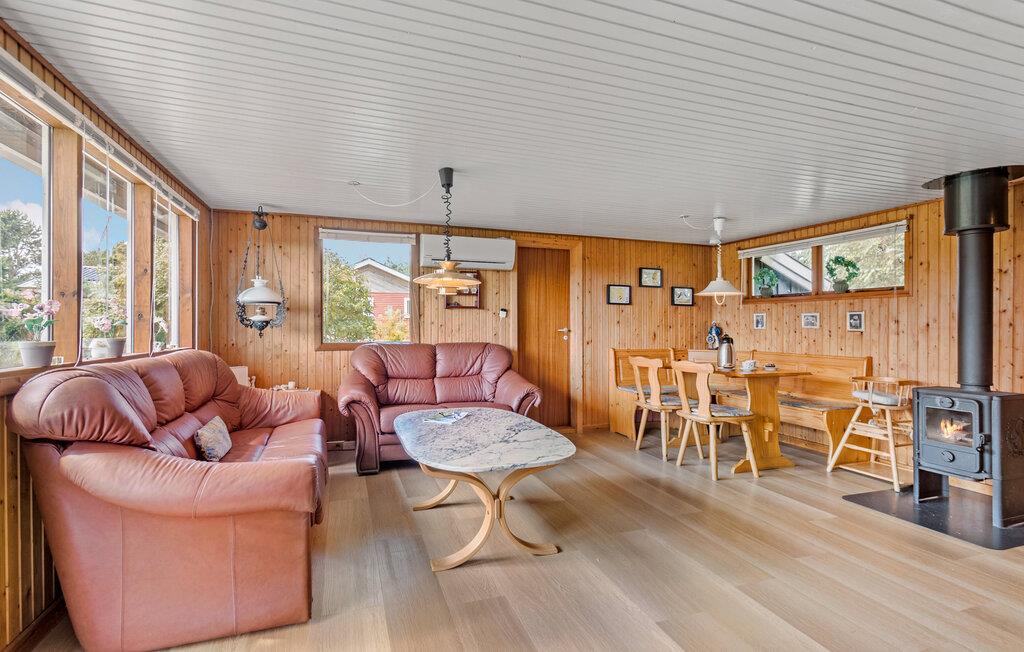 Hele familien kan se frem til en hyggelig ferie på den nordjyske østkyst! I Lyngså finder I nemlig dette skønne sommerhus, som emmer af varme og nostalgi med sine gyldne trævægge, brændeovnen og de klassiske indretningsløsninger. Der er en behagelig udsigt over den grønne have fra opholdsrummet, hvor I kan slappe af og sætte jer med en kop kaffe efter dagens udflugter.